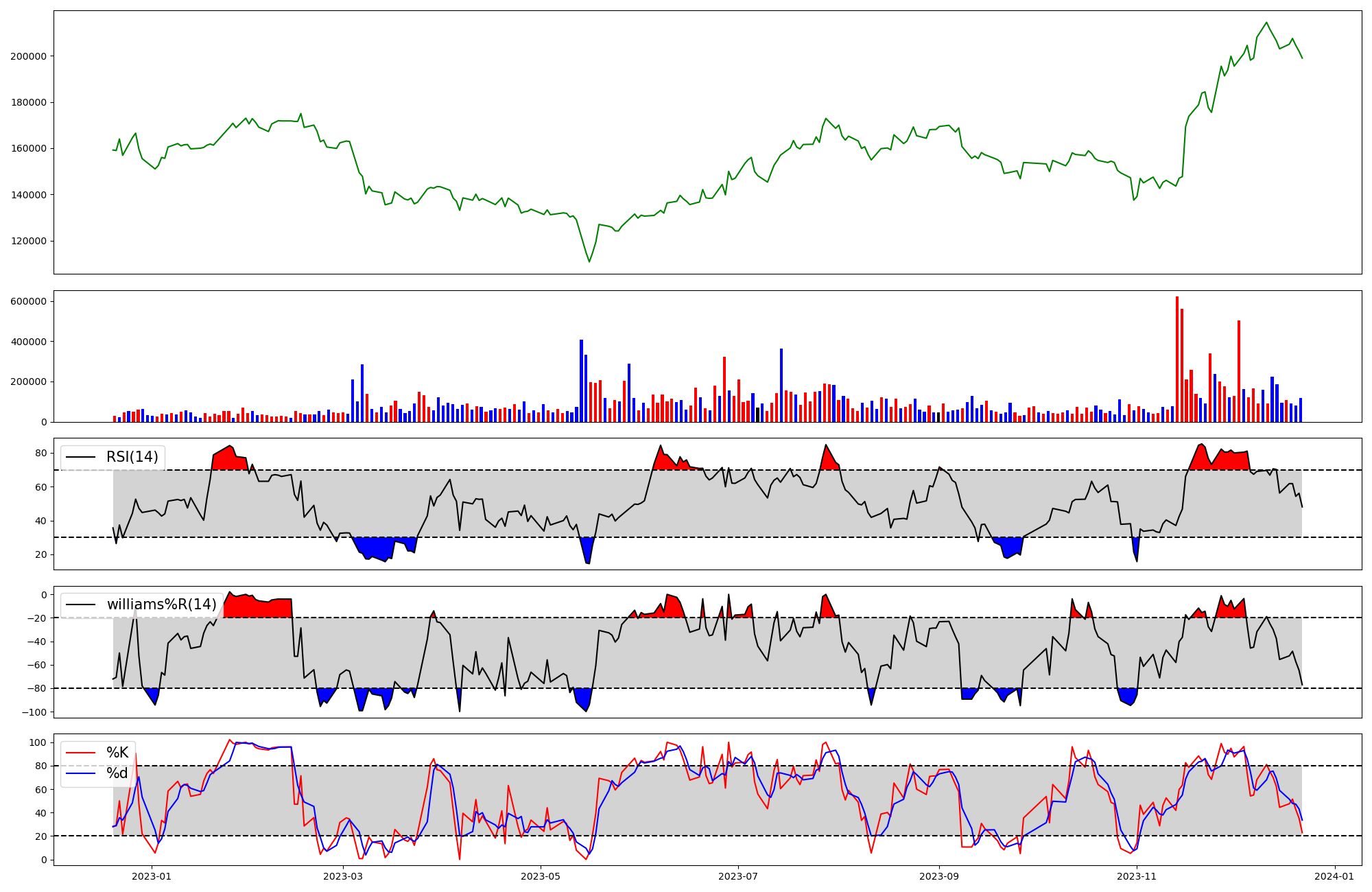 | RSI | Williams %R | stochastic(%K) | |