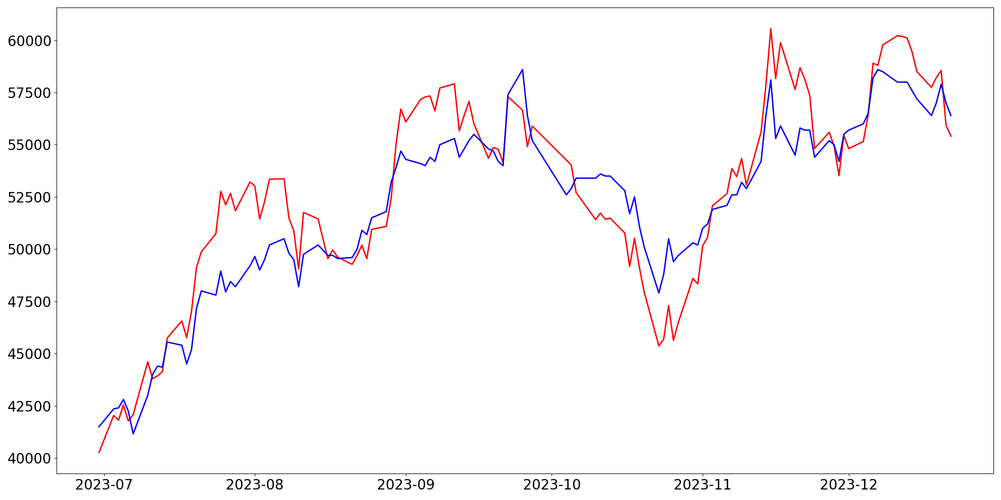 [ - : 실제값(종가) / - : 예측값(종가) ]