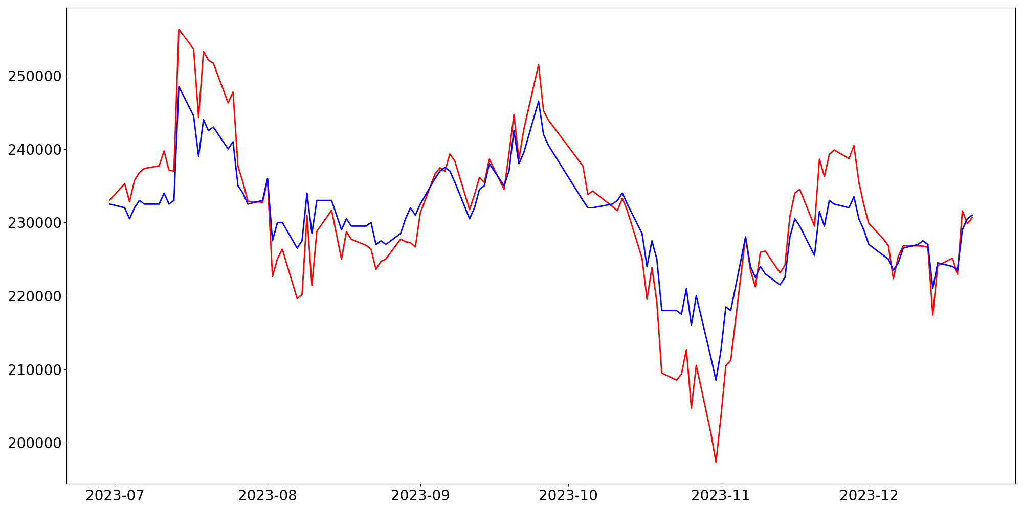 [ - : 실제값(종가) / - : 예측값(종가) ]
