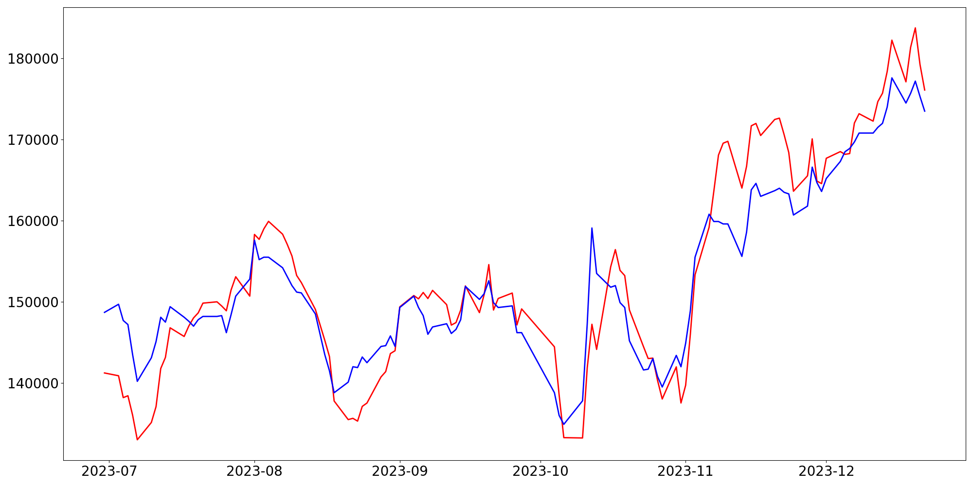 [ - : 실제값(종가) / - : 예측값(종가) ]