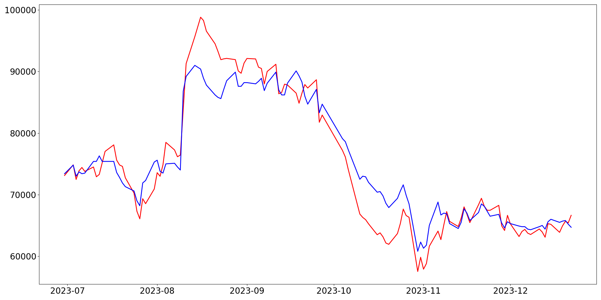 [ - : 실제값(종가) / - : 예측값(종가) ]