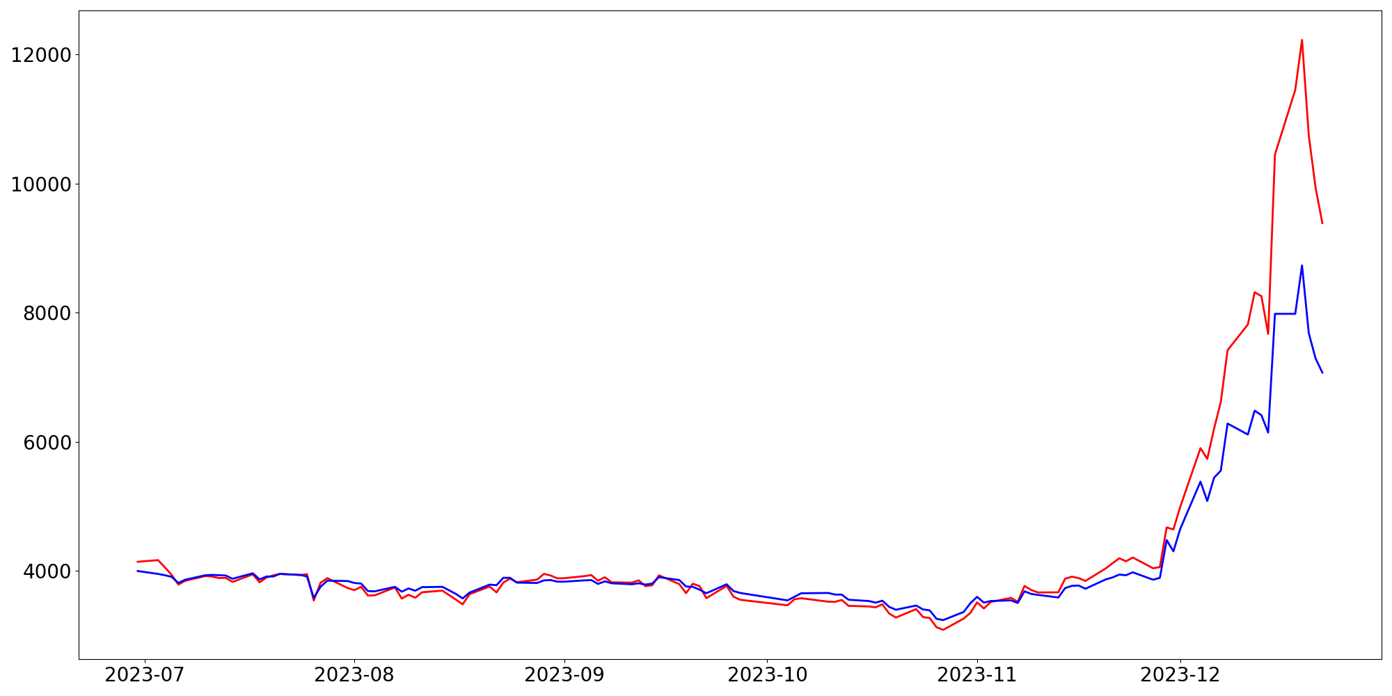 [ - : 실제값(종가) / - : 예측값(종가) ]