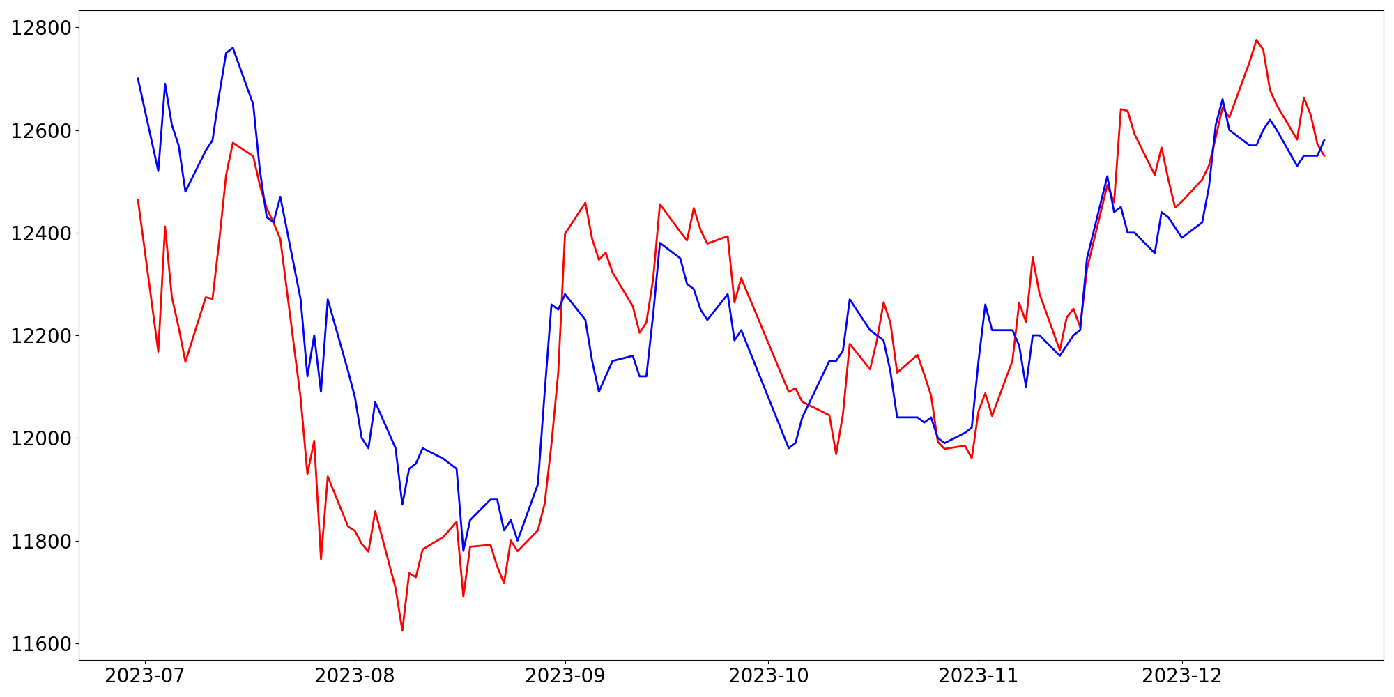 [ - : 실제값(종가) / - : 예측값(종가) ]