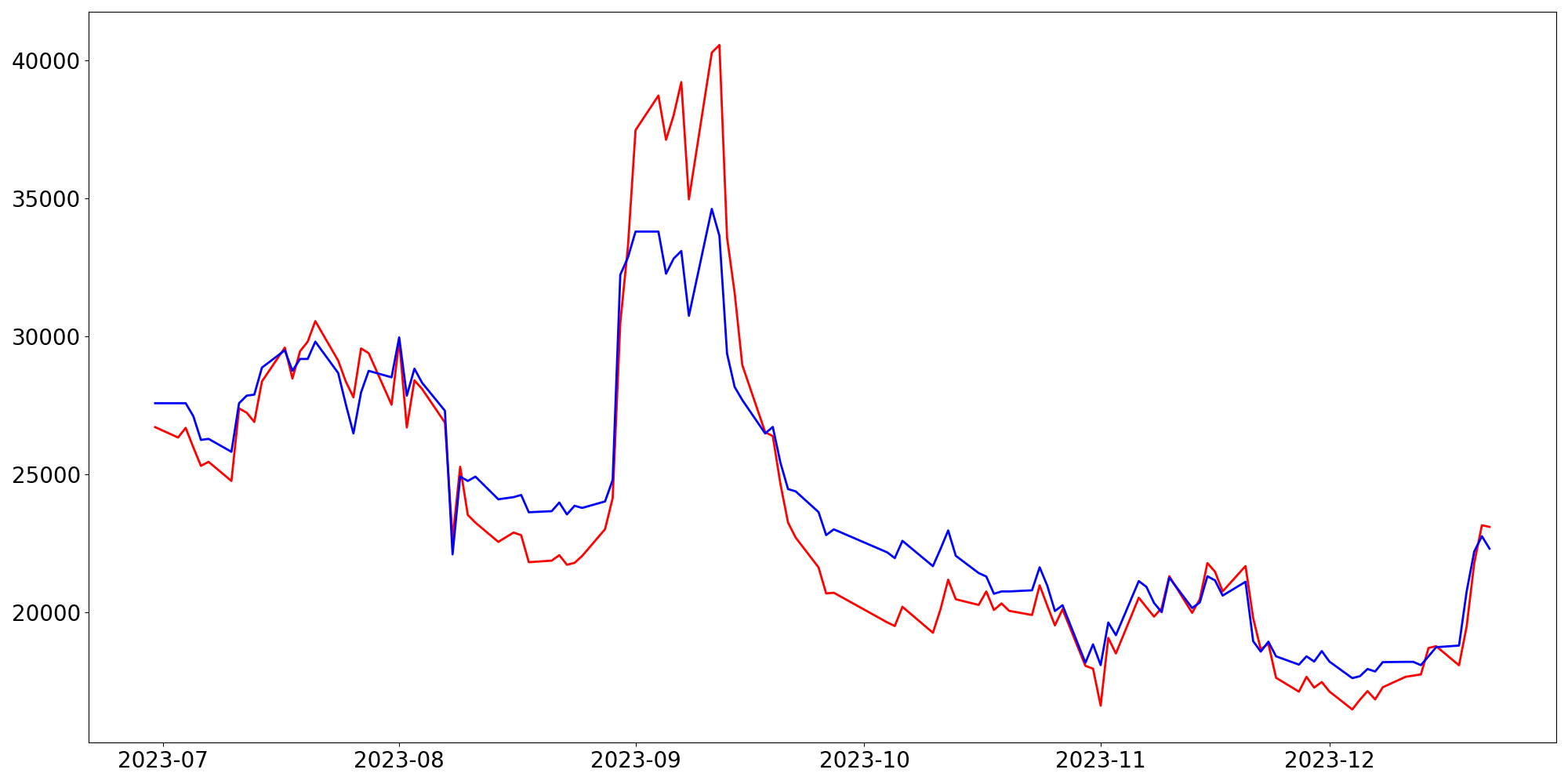 [ - : 실제값(종가) / - : 예측값(종가) ]