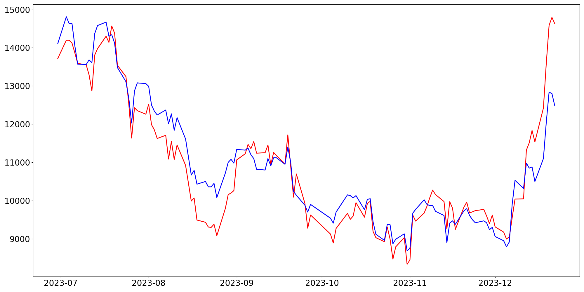 [ - : 실제값(종가) / - : 예측값(종가) ]