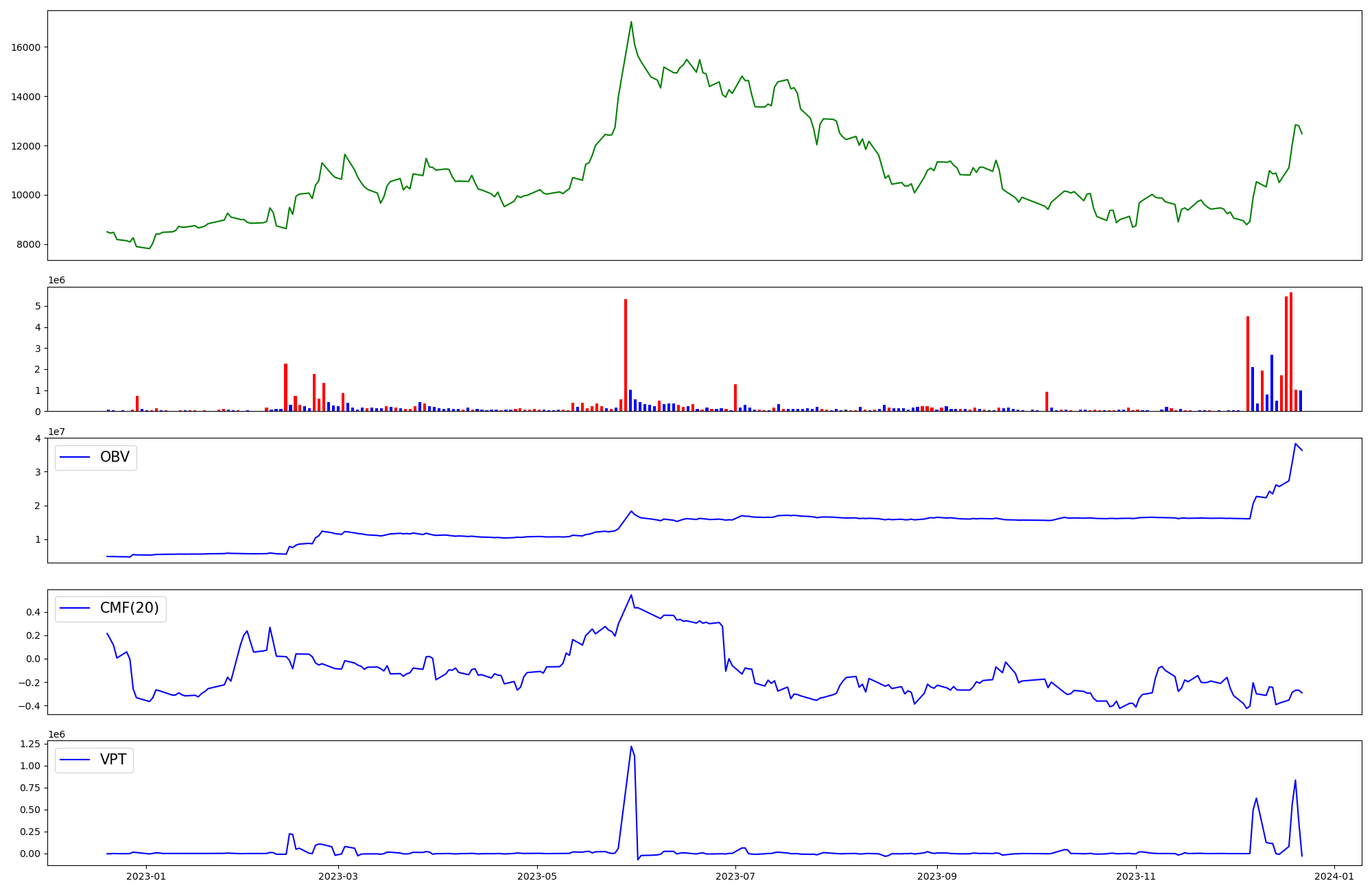 | OBV | CMF | VPT | |