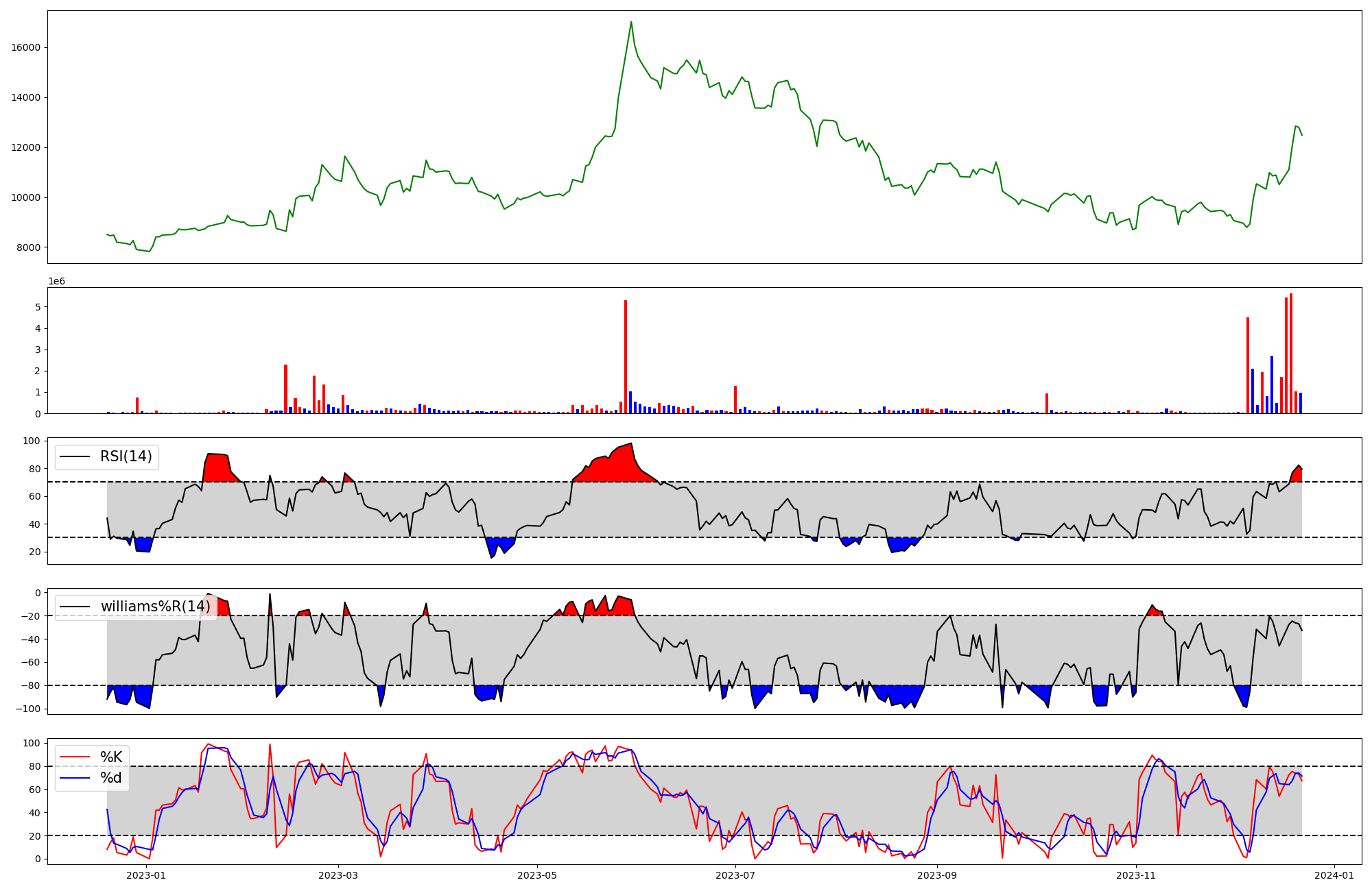 | RSI | Williams %R | stochastic(%K) | |