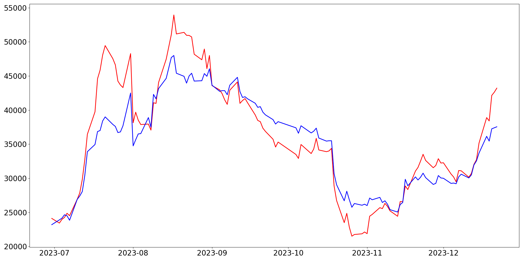 [ - : 실제값(종가) / - : 예측값(종가) ]