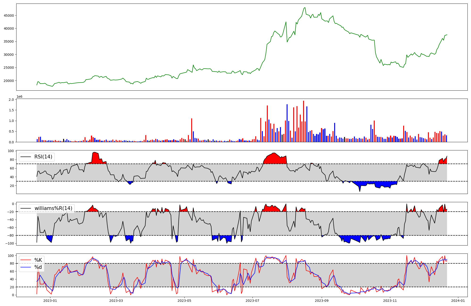 | RSI | Williams %R | stochastic(%K) | |