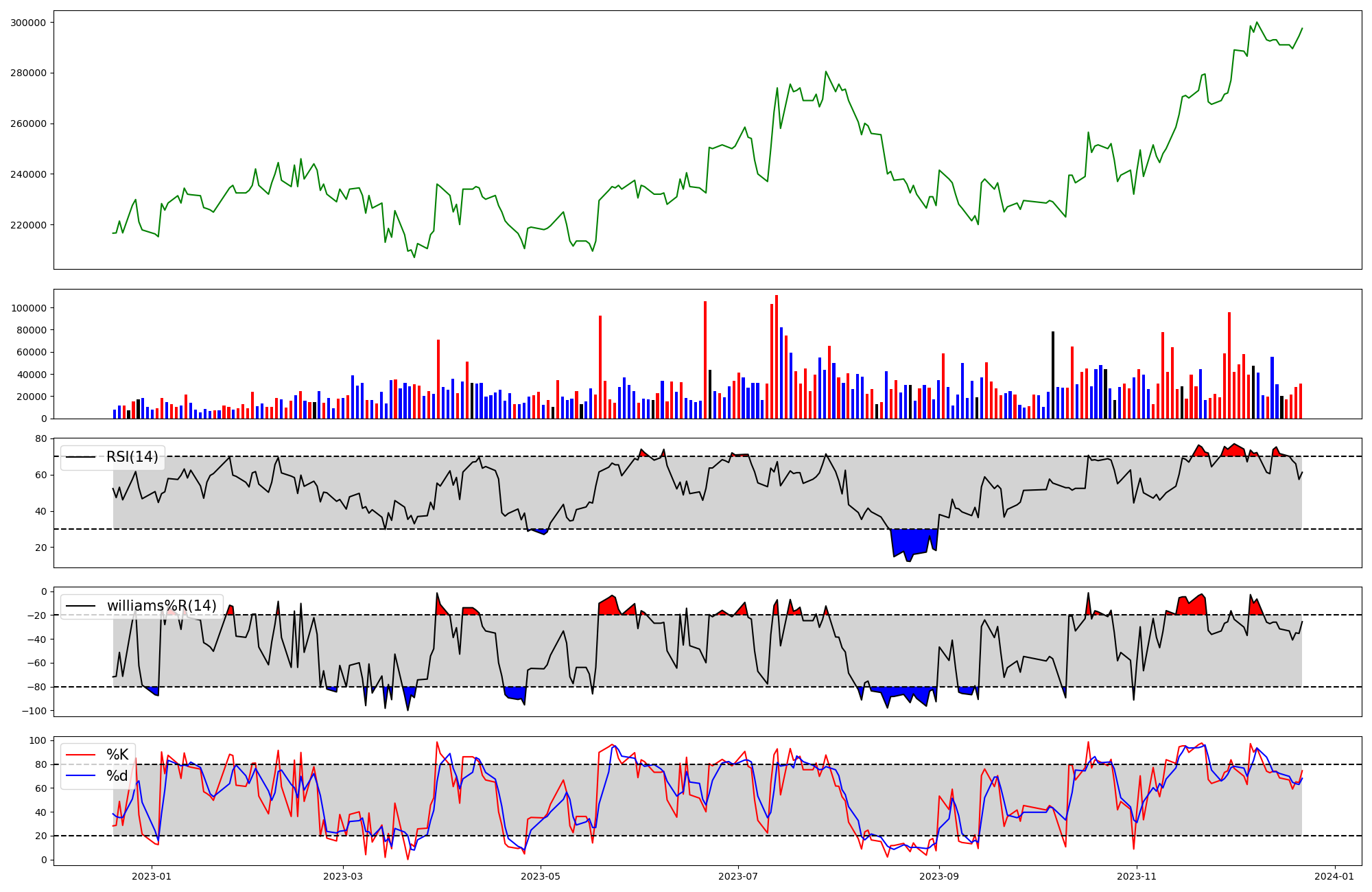 | RSI | Williams %R | stochastic(%K) | |
