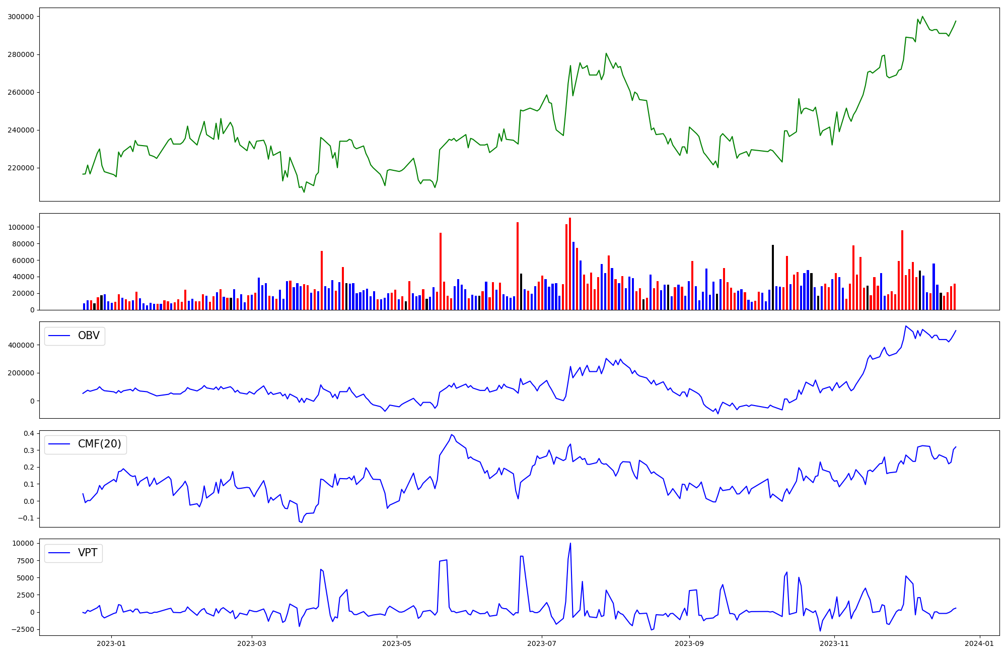 | OBV | CMF | VPT | |