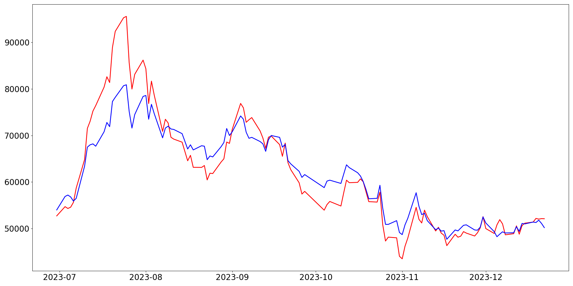 [ - : 실제값(종가) / - : 예측값(종가) ]