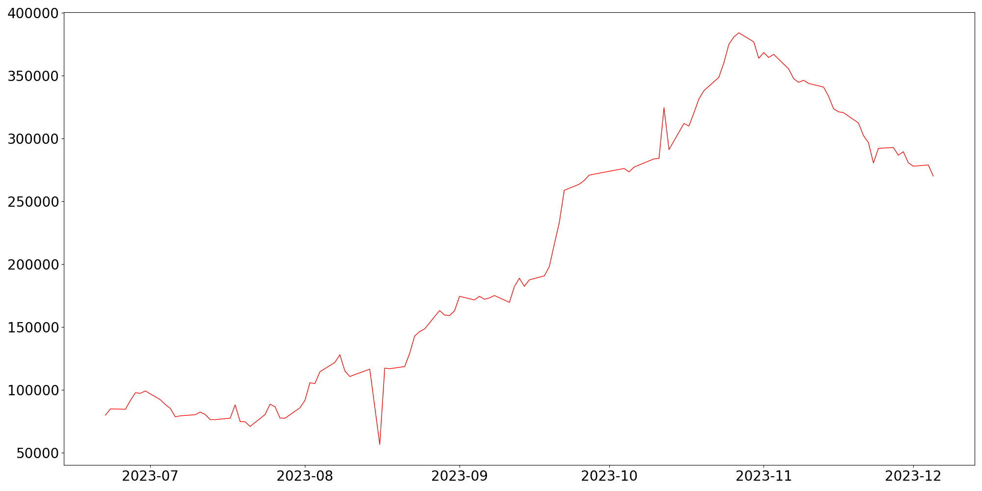 | 20일 | 65,045 | -435,391 | 383,400 |