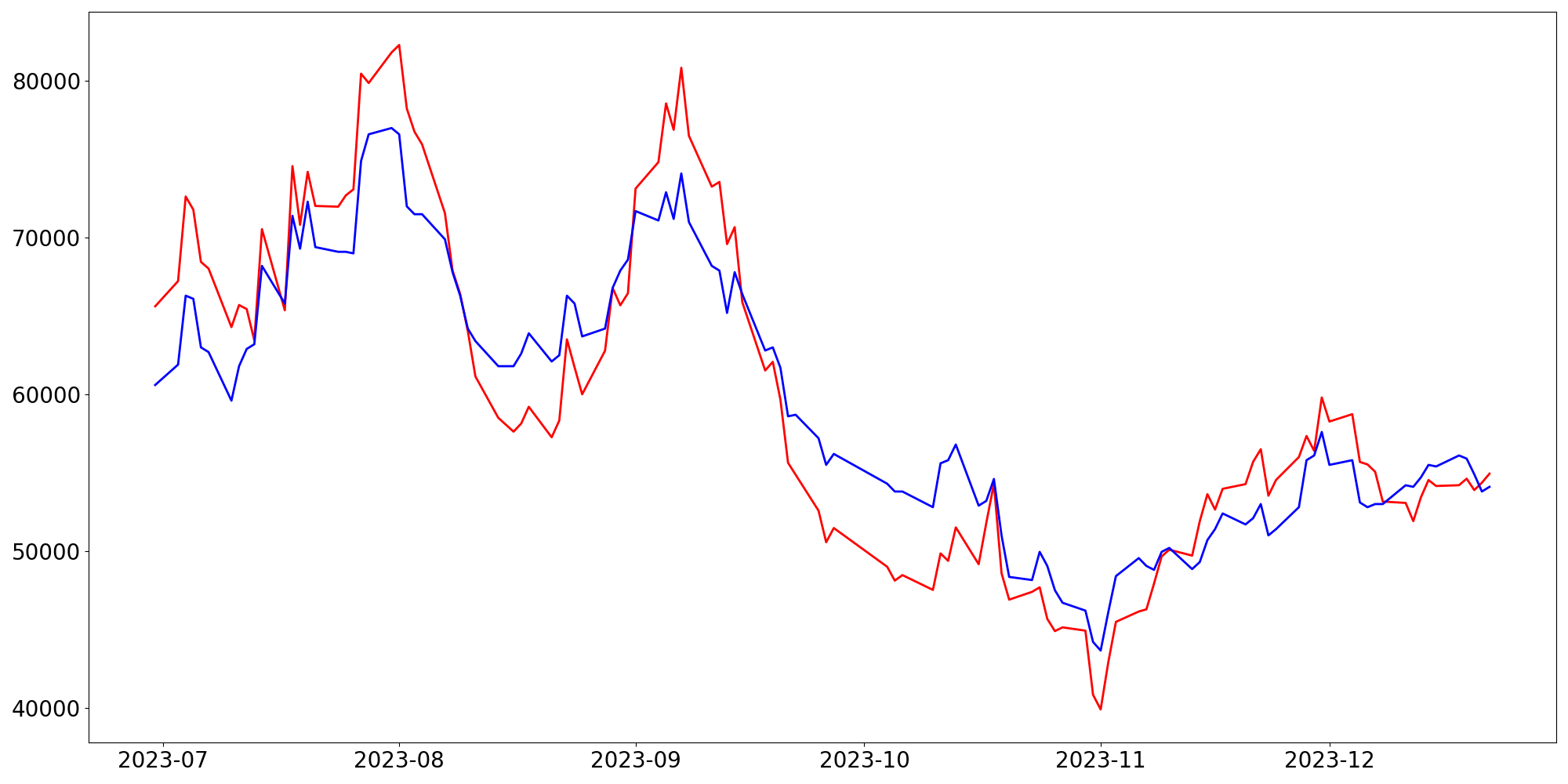 [ - : 실제값(종가) / - : 예측값(종가) ]