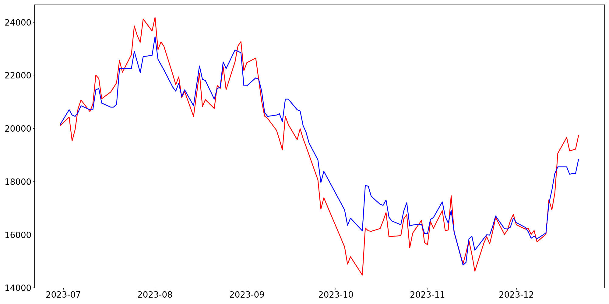 [ - : 실제값(종가) / - : 예측값(종가) ]