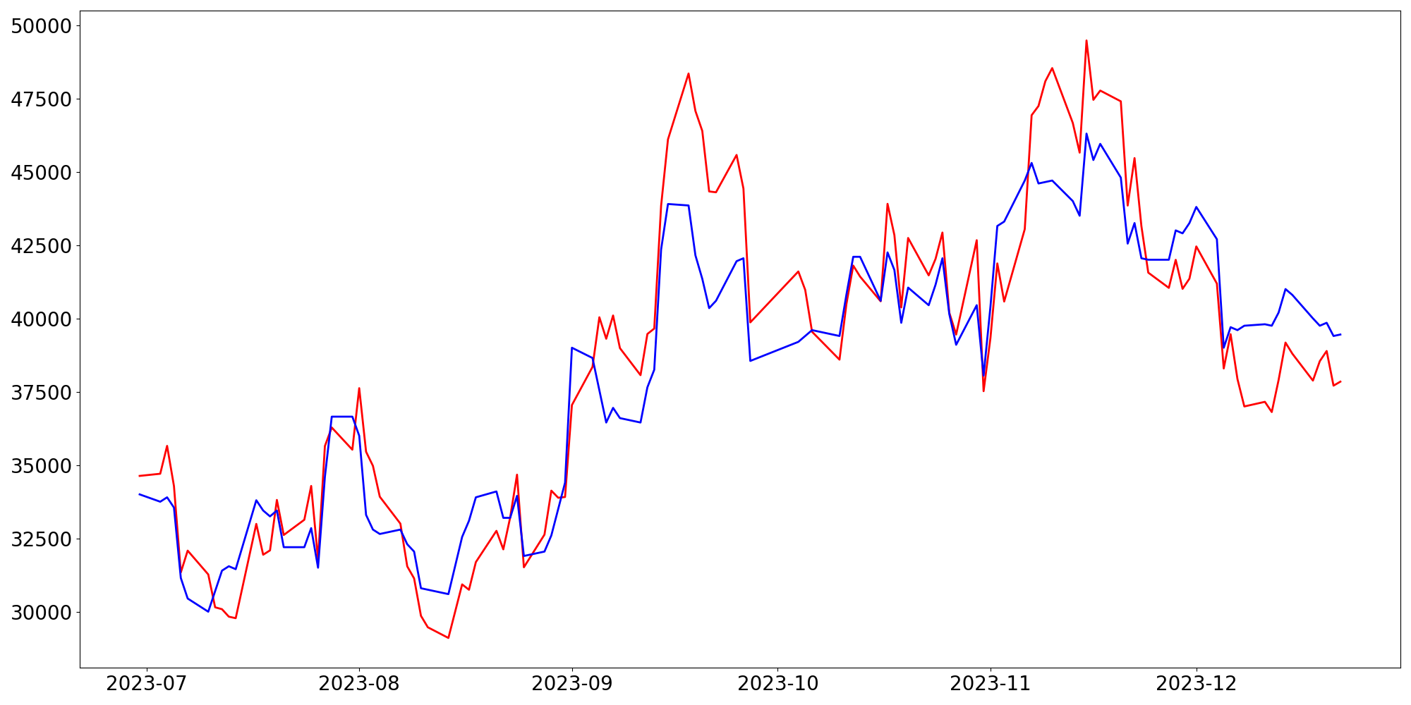 [ - : 실제값(종가) / - : 예측값(종가) ]