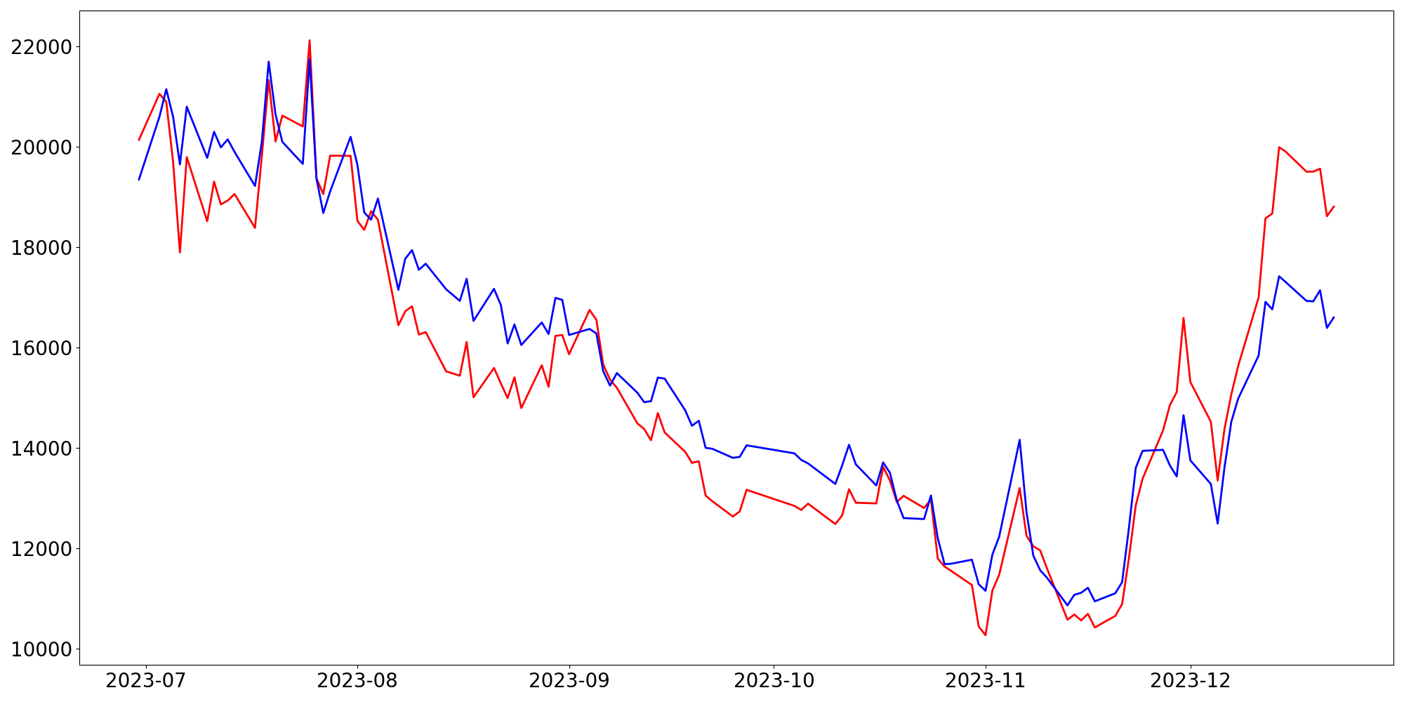 [ - : 실제값(종가) / - : 예측값(종가) ]