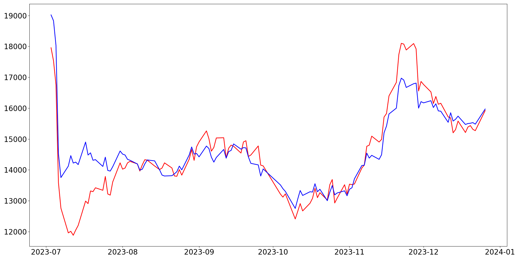 [ - : 실제값(종가) / - : 예측값(종가) ]