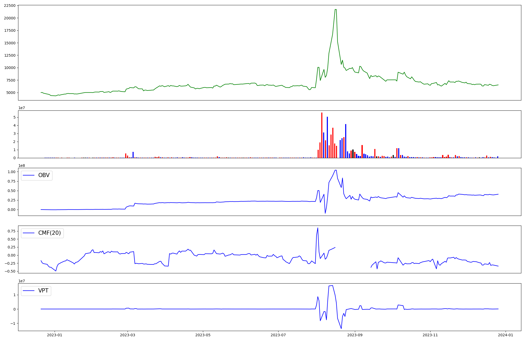| OBV | CMF | VPT | |