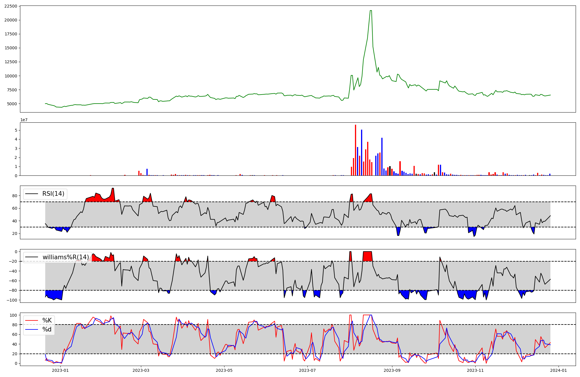 | RSI | Williams %R | stochastic(%K) | |