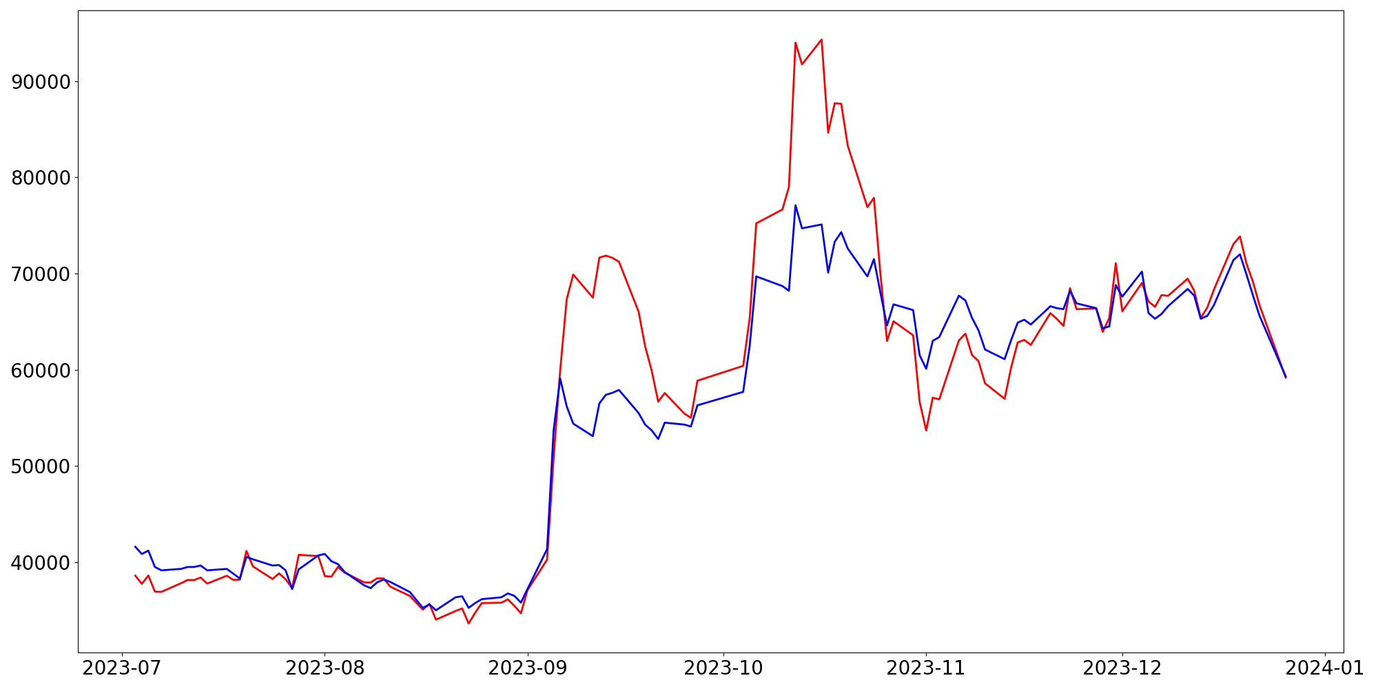 [ - : 실제값(종가) / - : 예측값(종가) ]