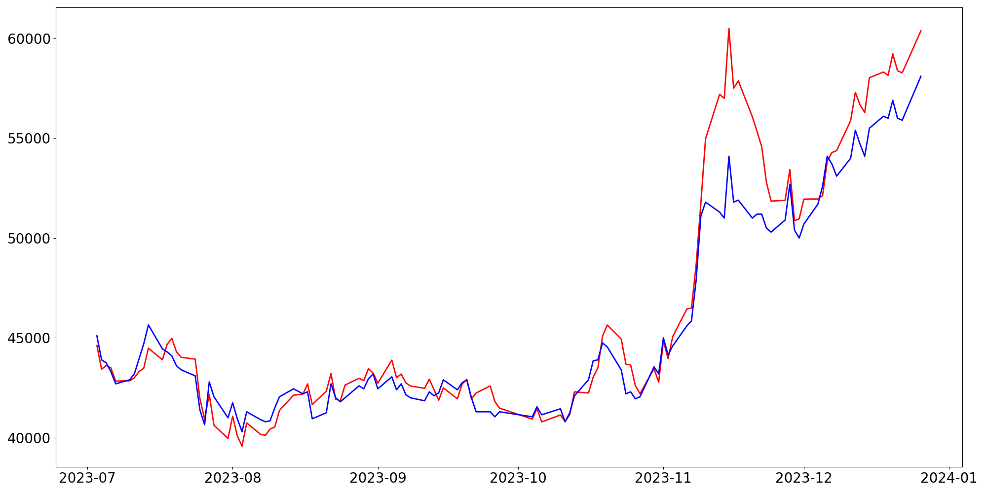 [ - : 실제값(종가) / - : 예측값(종가) ]