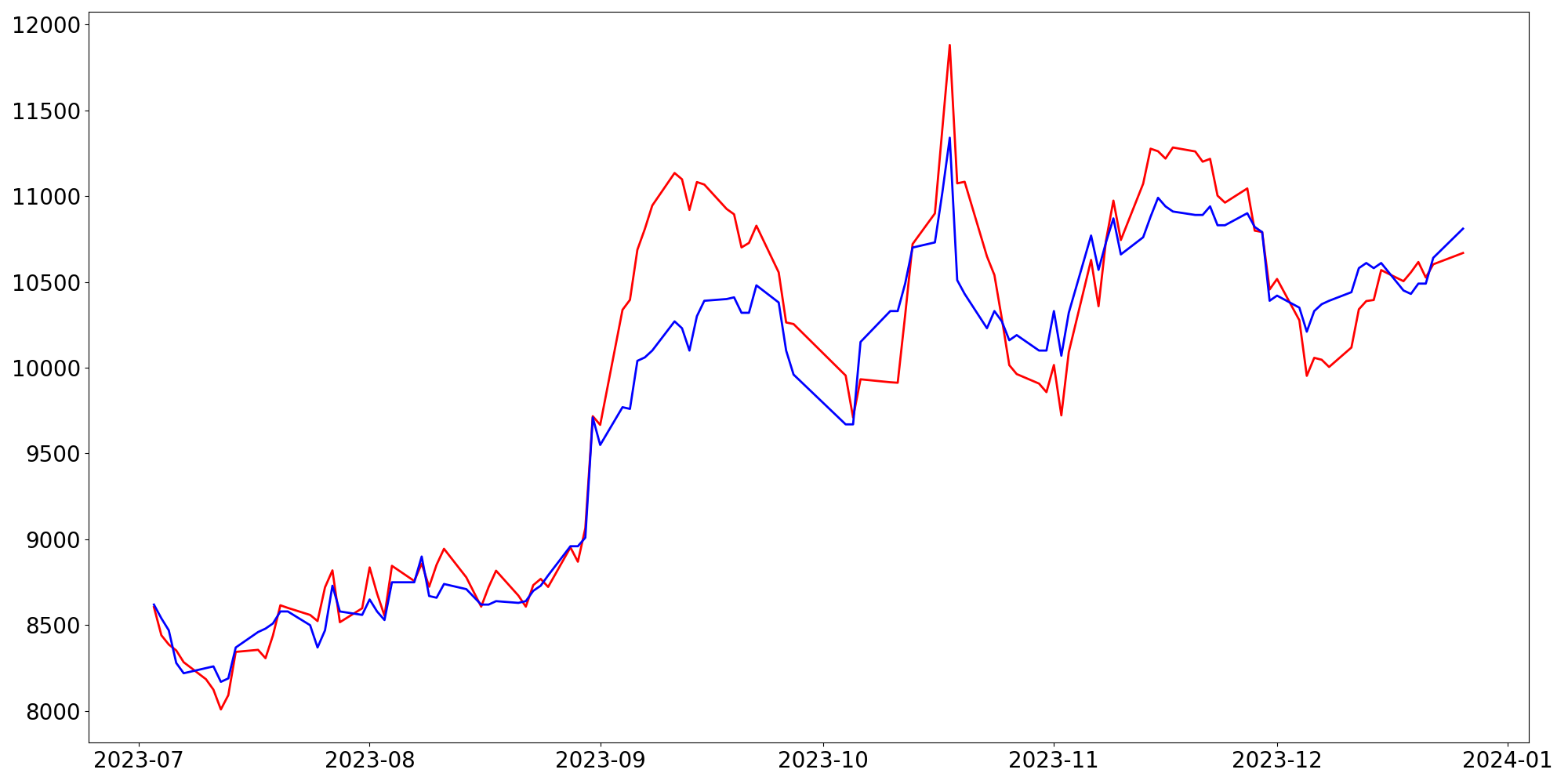 [ - : 실제값(종가) / - : 예측값(종가) ]