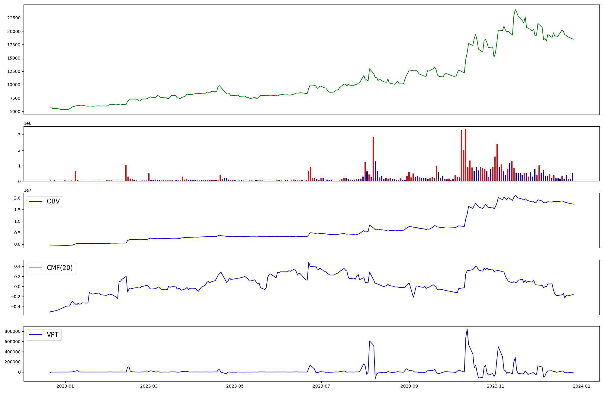 | OBV | CMF | VPT | |