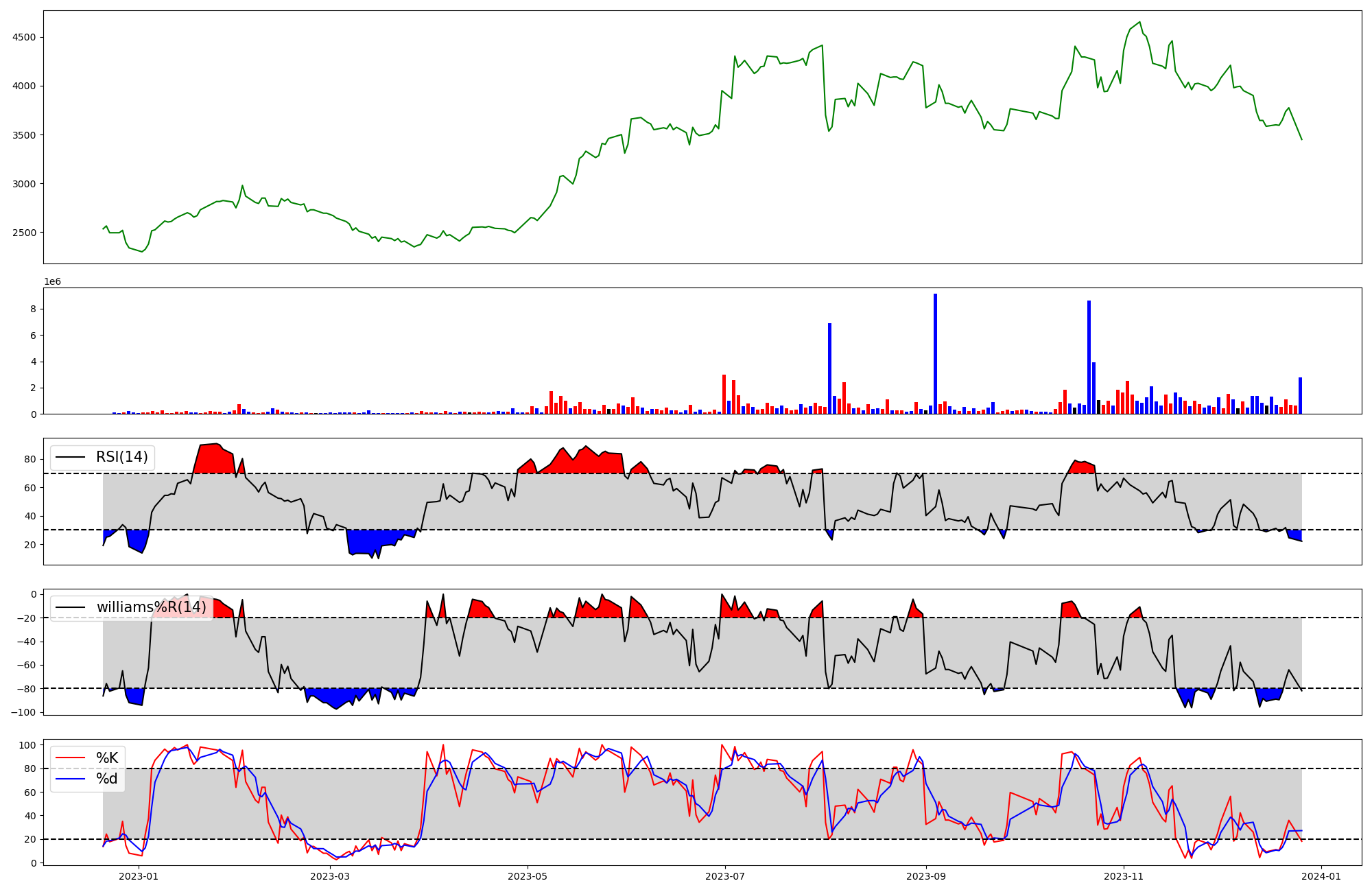 | RSI | Williams %R | stochastic(%K) | |
