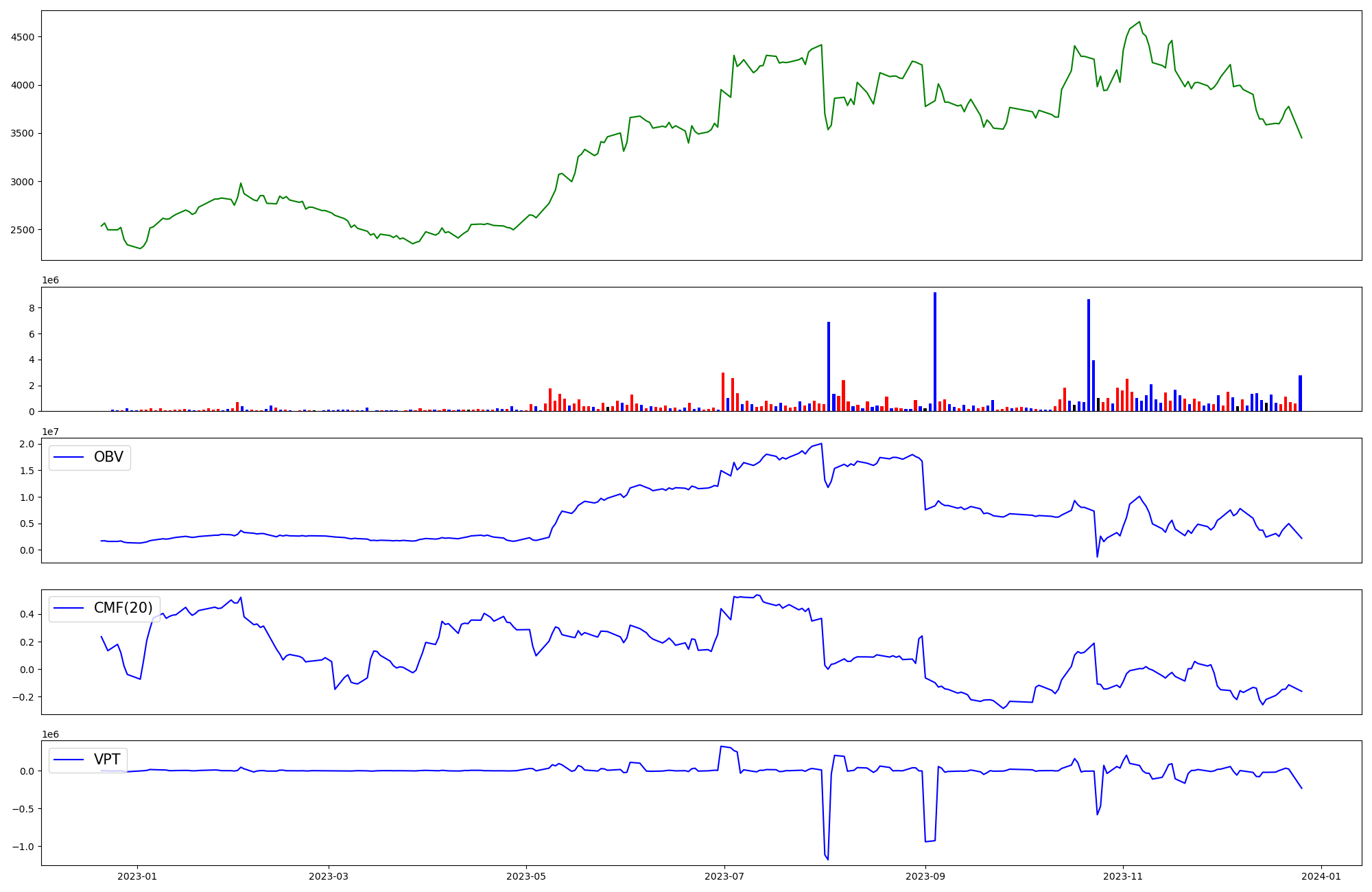 | OBV | CMF | VPT | |