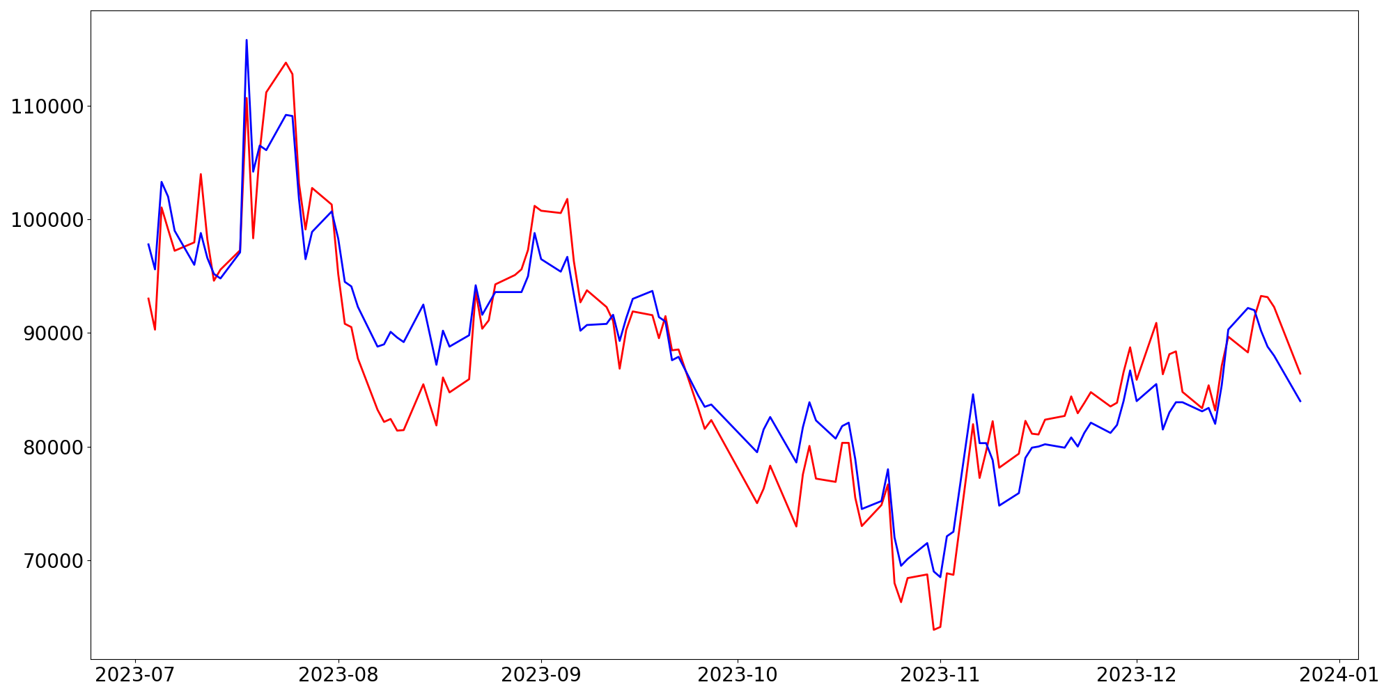 [ - : 실제값(종가) / - : 예측값(종가) ]