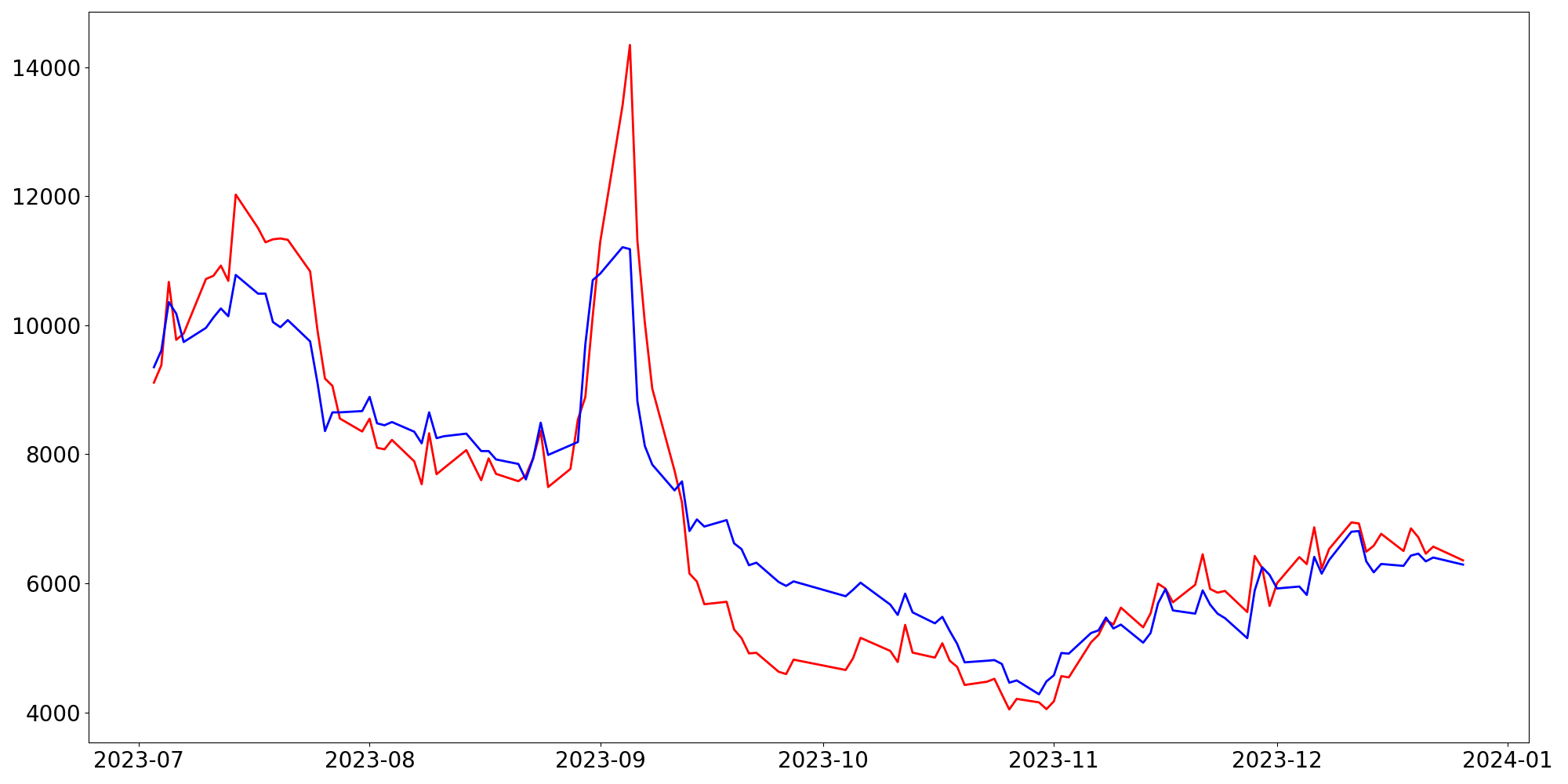[ - : 실제값(종가) / - : 예측값(종가) ]