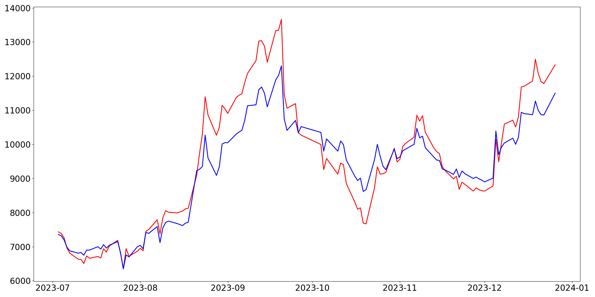 [ - : 실제값(종가) / - : 예측값(종가) ]