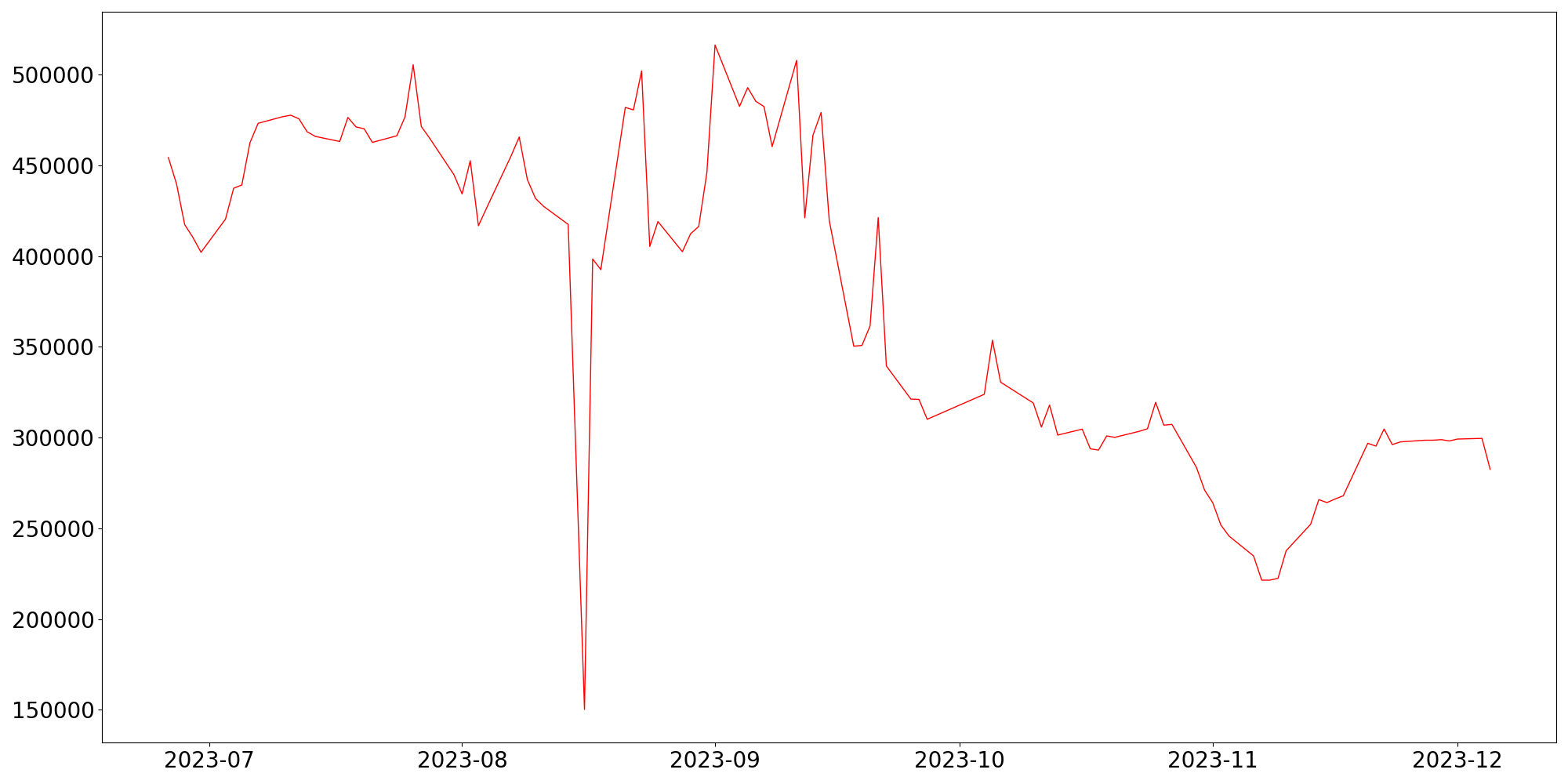 | 20일 | 132,449 | 308,023 | -141,456 |