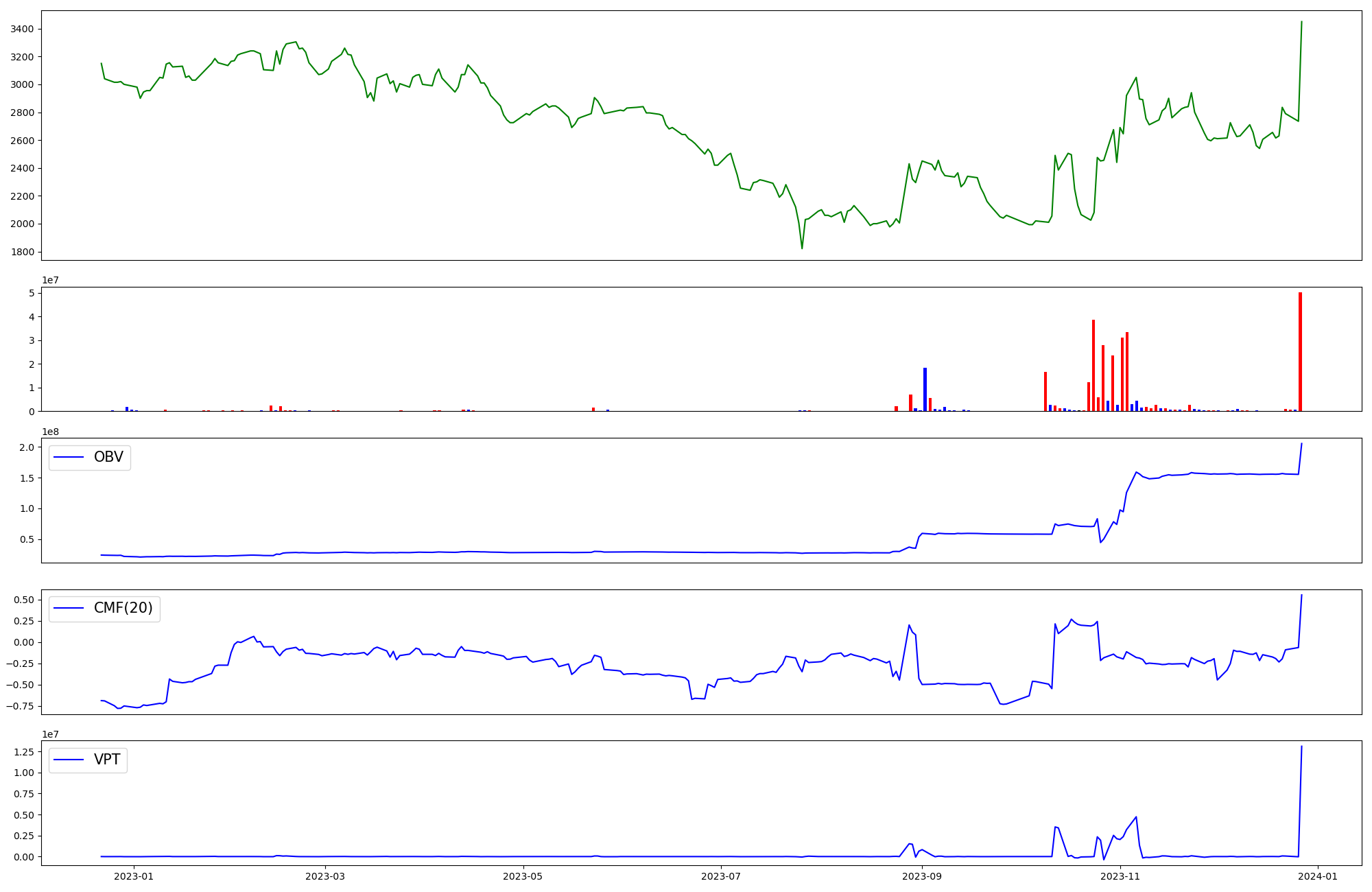 | OBV | CMF | VPT | |