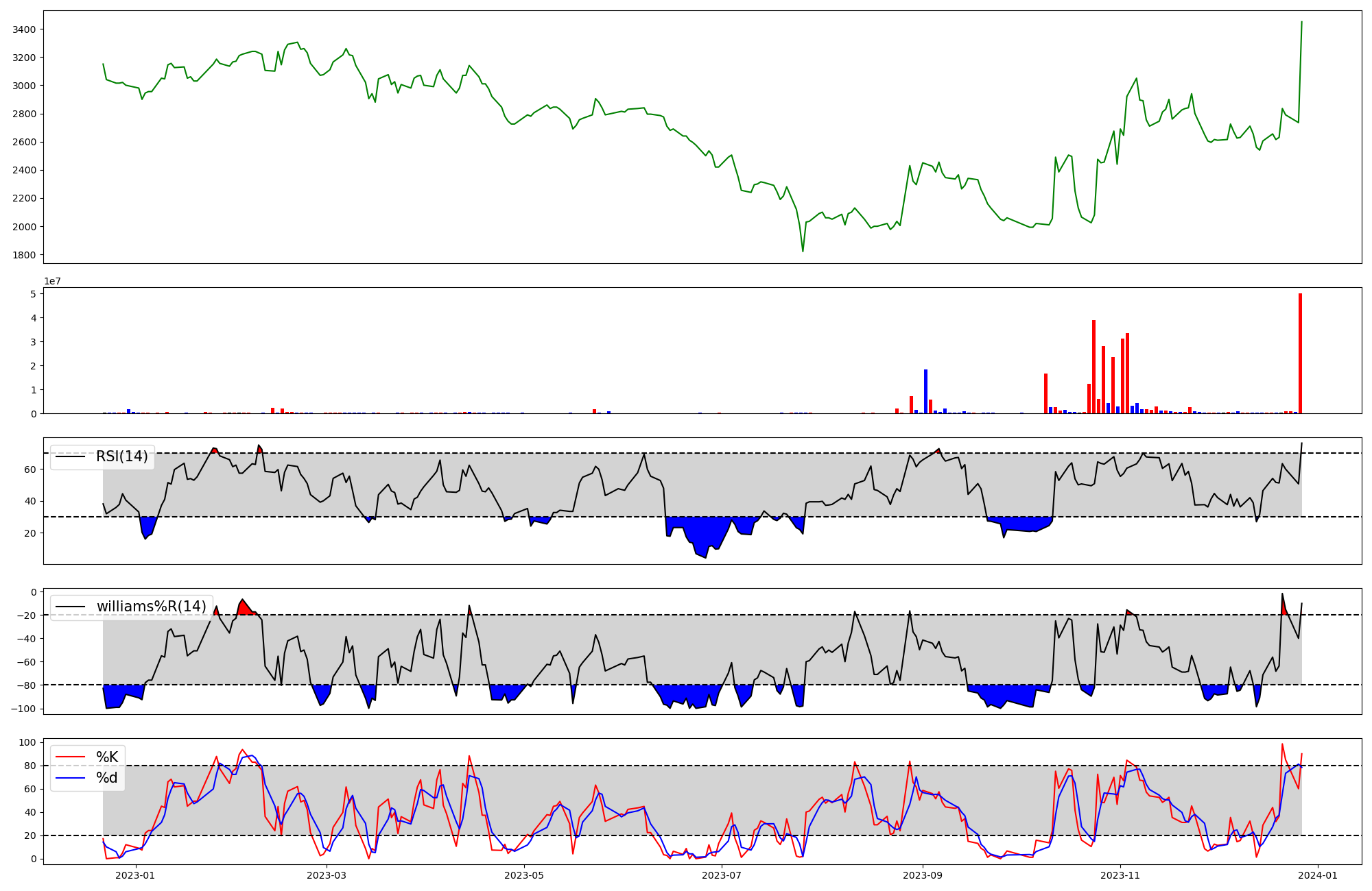 | RSI | Williams %R | stochastic(%K) | |