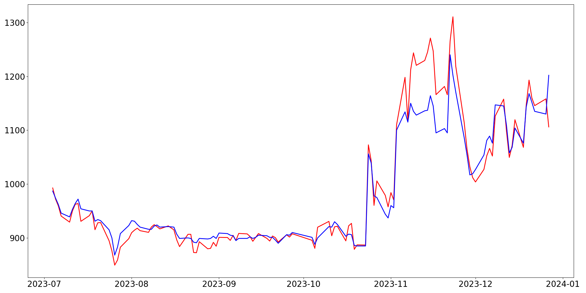 [ - : 실제값(종가) / - : 예측값(종가) ]
