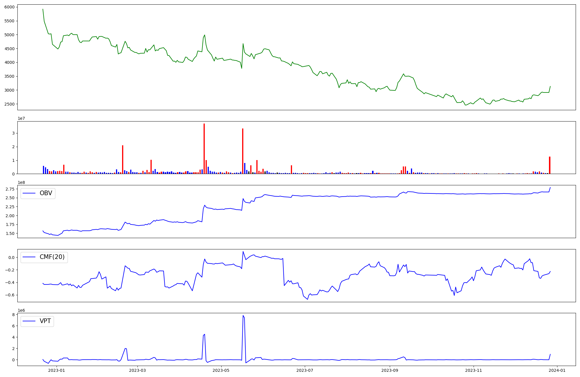 | OBV | CMF | VPT | |