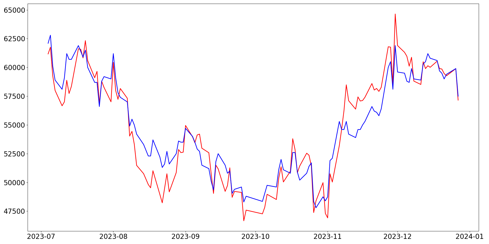 [ - : 실제값(종가) / - : 예측값(종가) ]