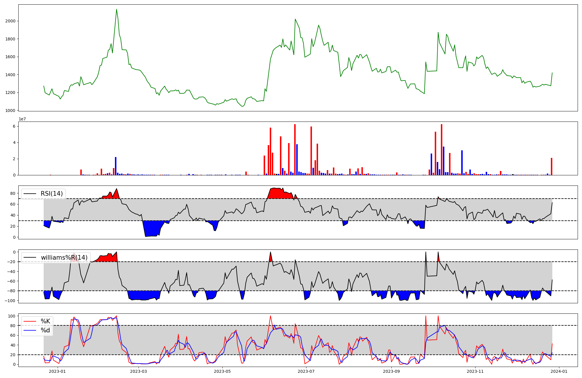 RSI Williams %R stochastic(%K)