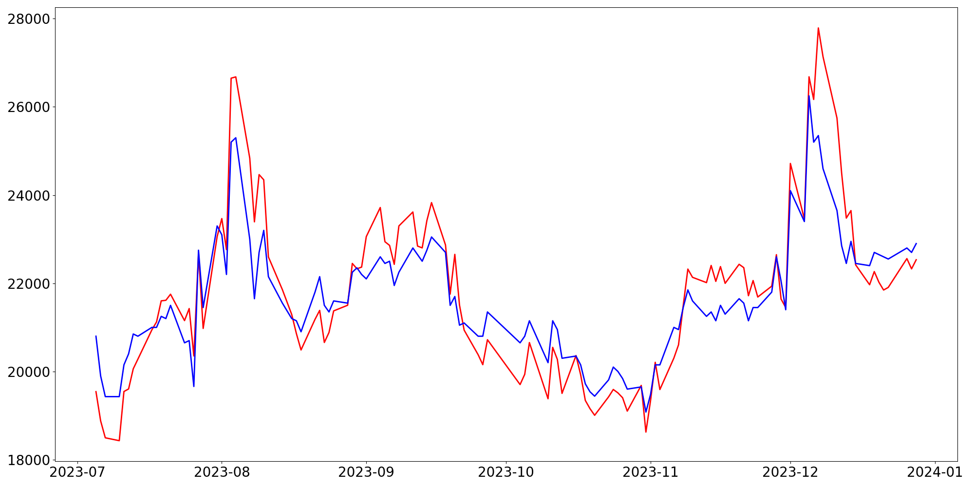 [ - : 실제값(종가) / - : 예측값(종가) ]