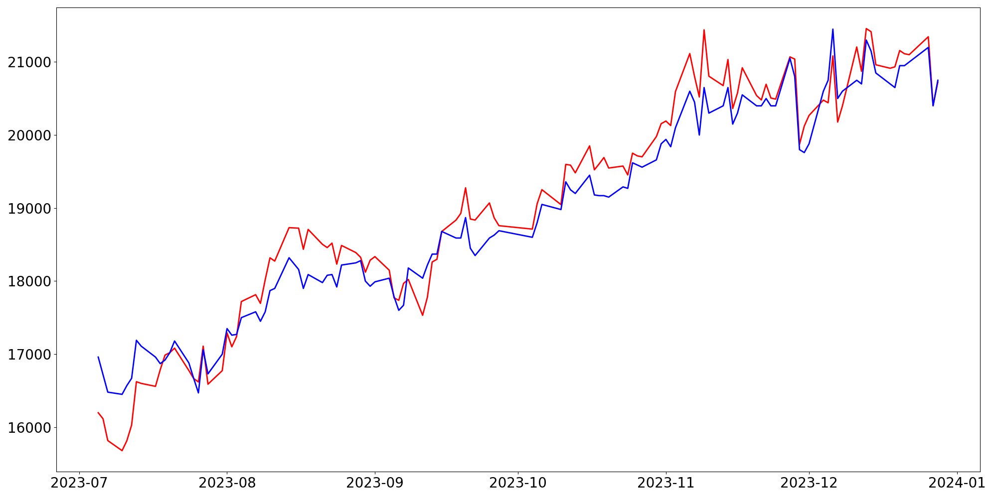 [ - : 실제값(종가) / - : 예측값(종가) ]