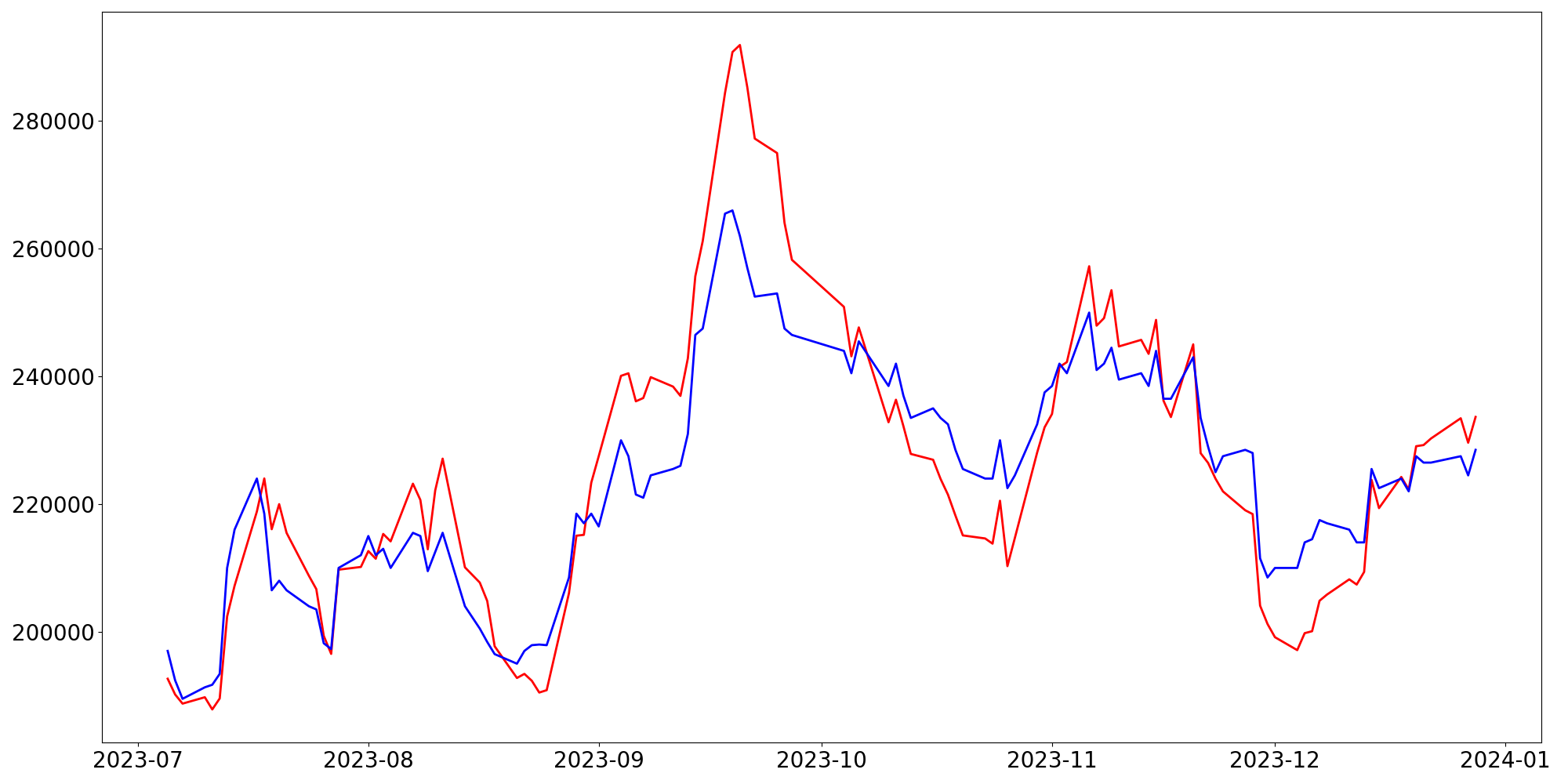 [ - : 실제값(종가) / - : 예측값(종가) ]
