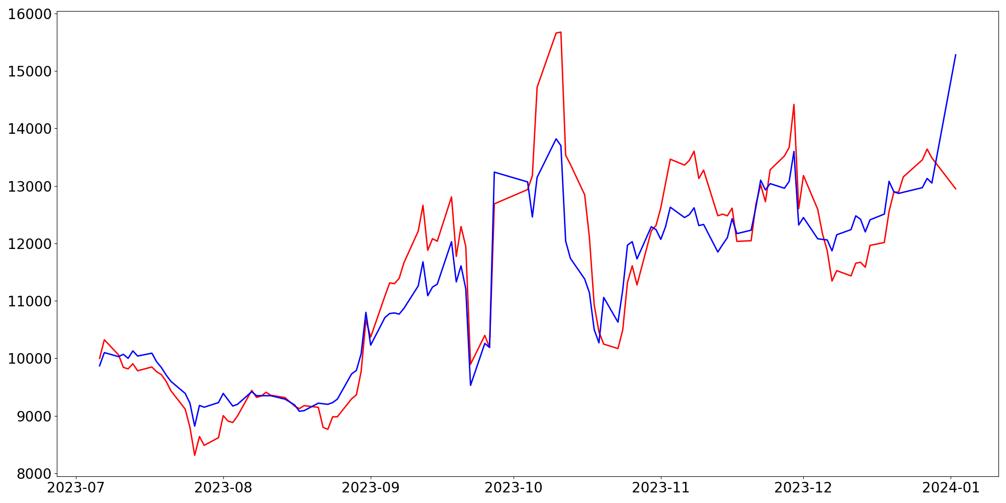 [ - : 실제값(종가) / - : 예측값(종가) ]