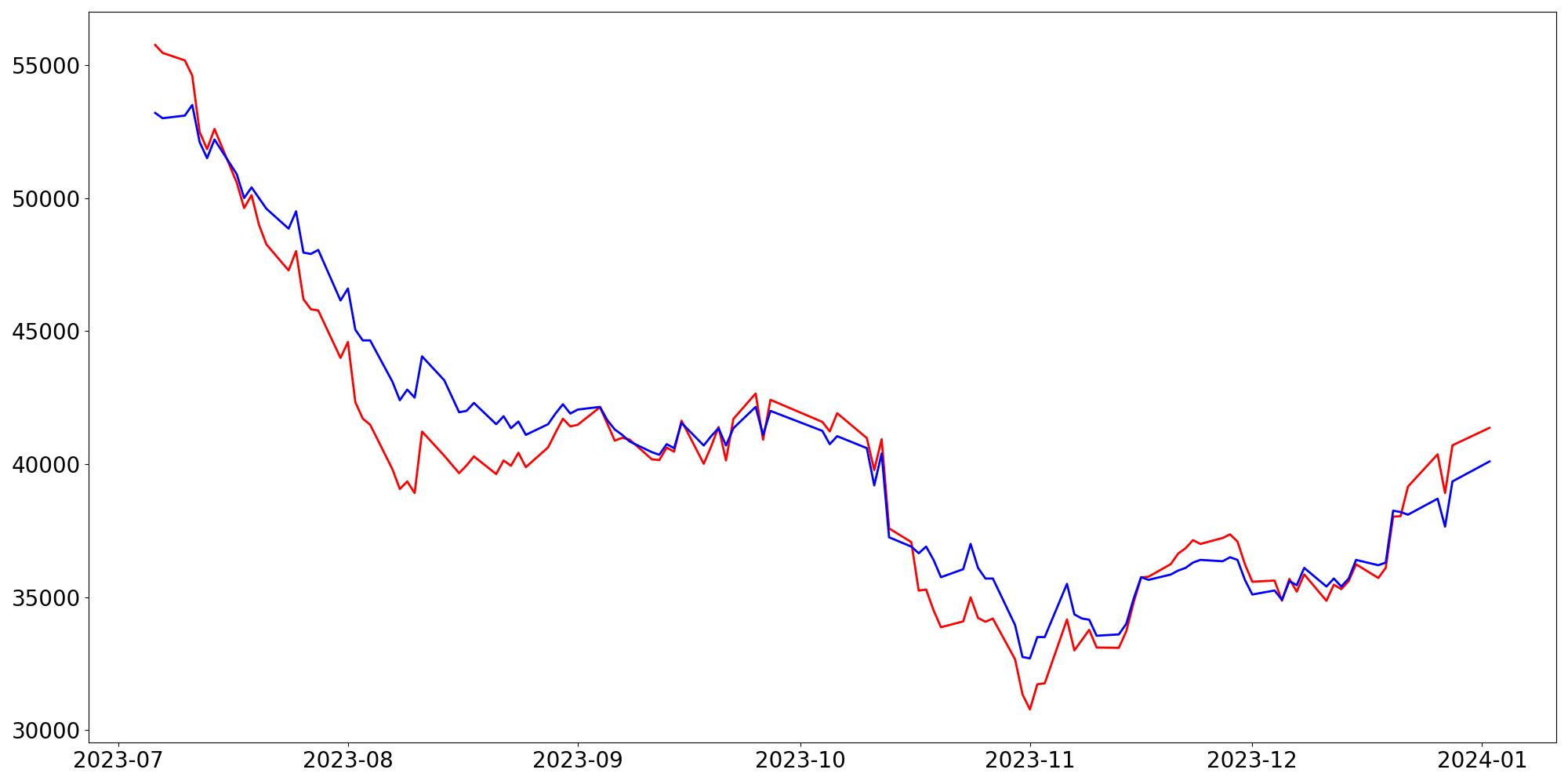 [ - : 실제값(종가) / - : 예측값(종가) ]