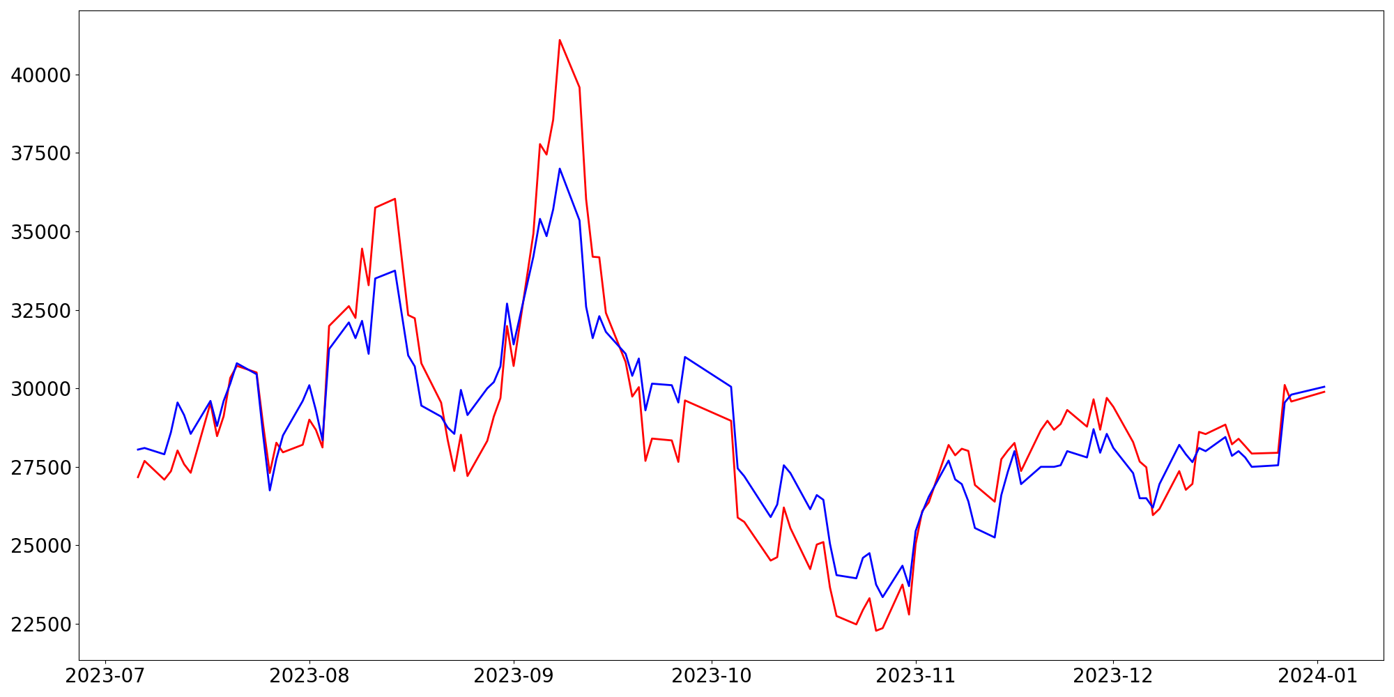 [ - : 실제값(종가) / - : 예측값(종가) ]