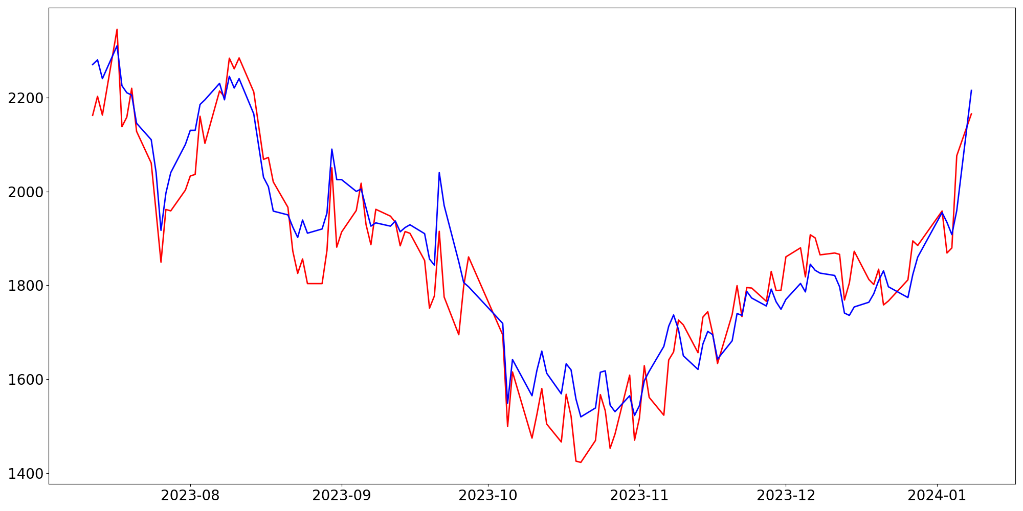 [ - : 실제값(종가) / - : 예측값(종가) ]