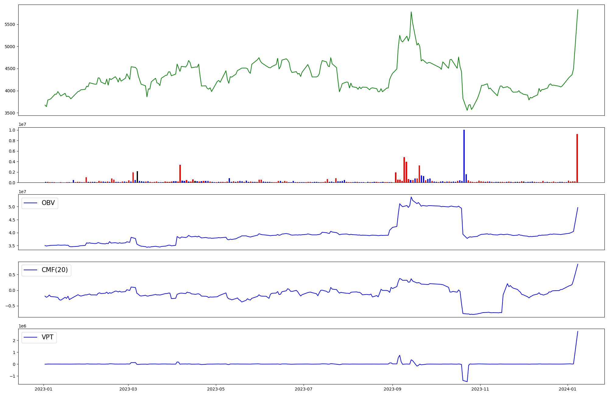 | OBV | CMF | VPT | |
