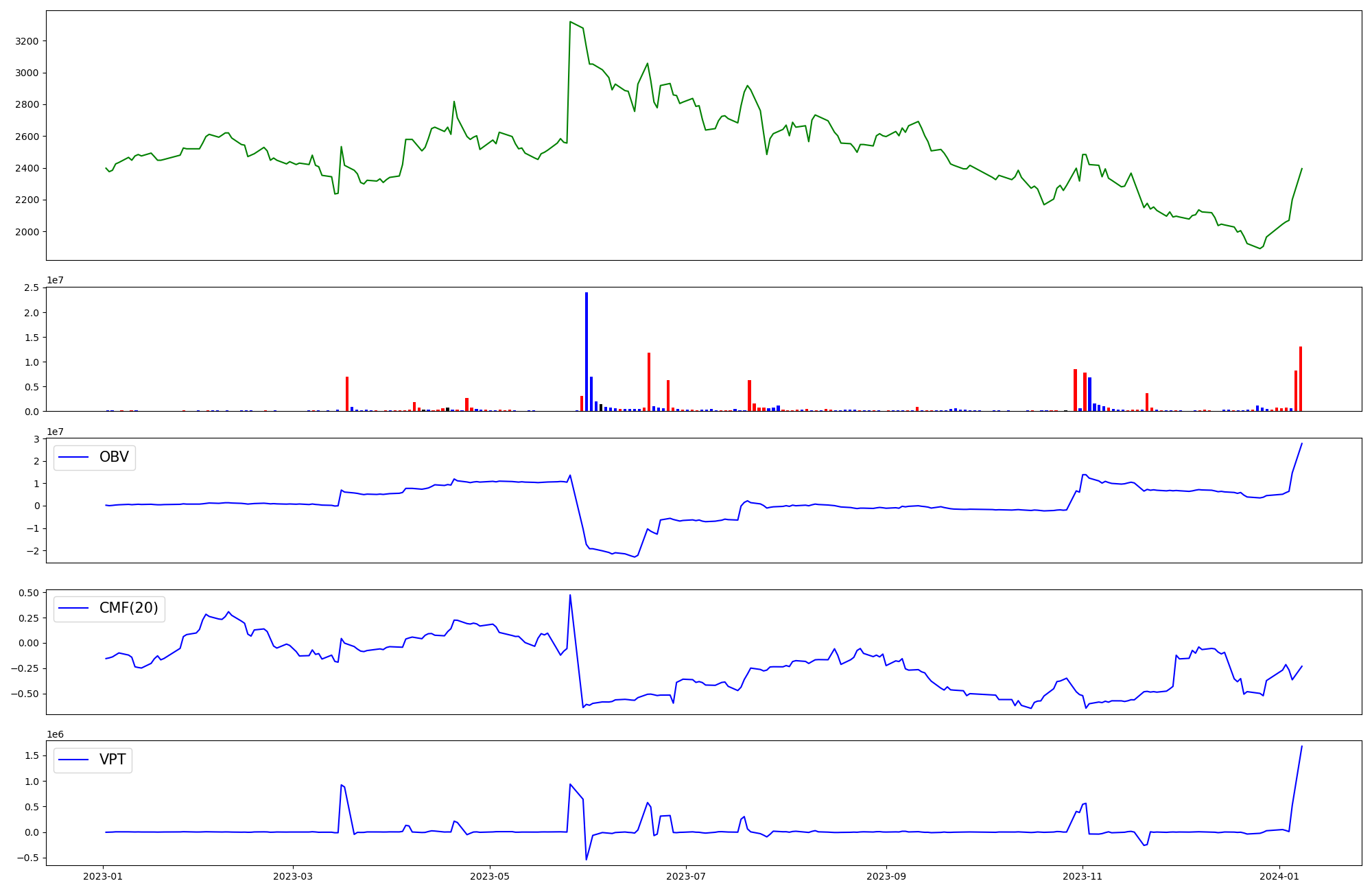 | OBV | CMF | VPT | |