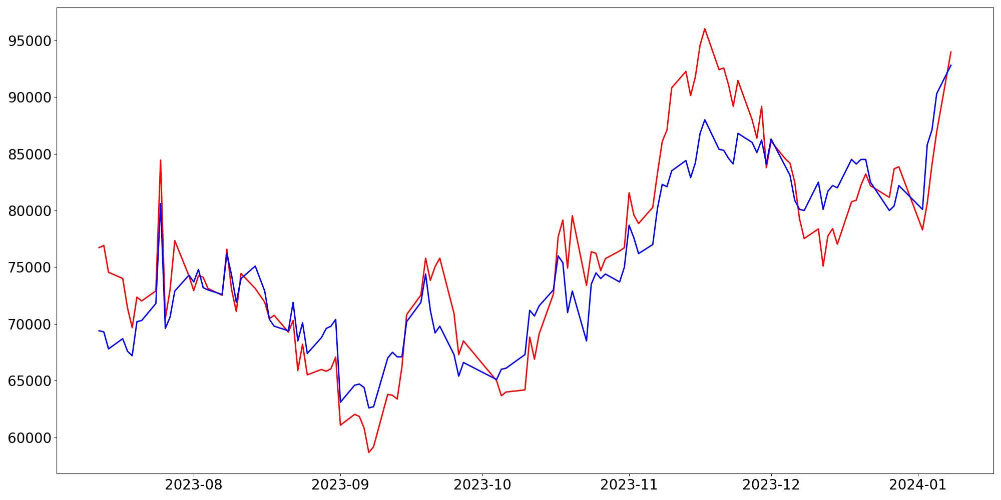 [ - : 실제값(종가) / - : 예측값(종가) ]
